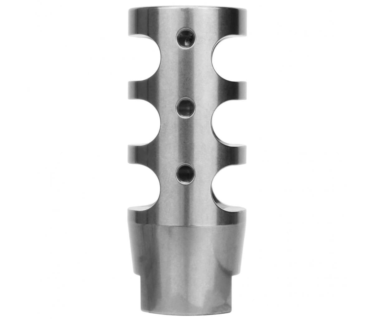 Stainless Steel Compact Compensator is made of an all steel construction with a heat treated, erosion resistant Stainless Steel finish. It comes with a .223/5.56 1/2″x28 thread pitch. Reduces recoil and muzzle rise.