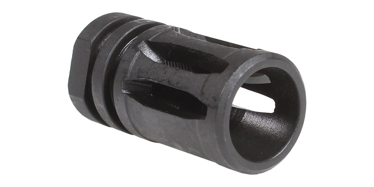 The .45 ACP .578-28 A2 Birdcage Flash Hider is essential for taming your .45 ACP AR-15. This classic A2 Birdcage design reduces recoil, muzzle rise, sound, and flash, significantly improving shooting accuracy and comfort. Crafted from high-strength materials and finished with durable Manganese Phosphate, it offers excellent corrosion and wear resistance, ensuring longevity. The .578×28 threading is the standard for .45 ACP, making it a perfect fit for your firearm. This flash hider not only enhances performance but also ensures you can see clearly when shooting in low light conditions.