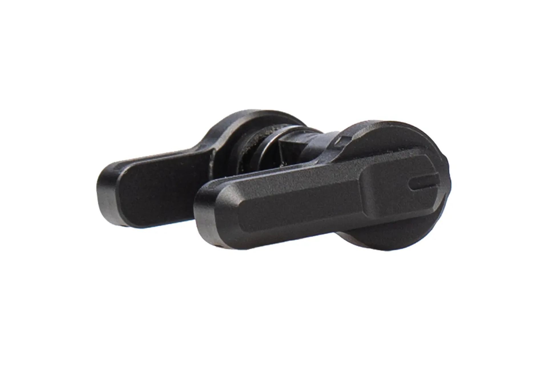 This drop-in part is configurable with a reversible selector drum, allowing for either a 45 or 90-degree throw out of the box. Each lever is retained by captured detents, which prevent loosening of lever fasteners even during the most demanding firing schedules. Two different lever lengths allow shooters to maintain the benefits of an ambidextrous selector without interfering with their dominant firing hand during manipulation.