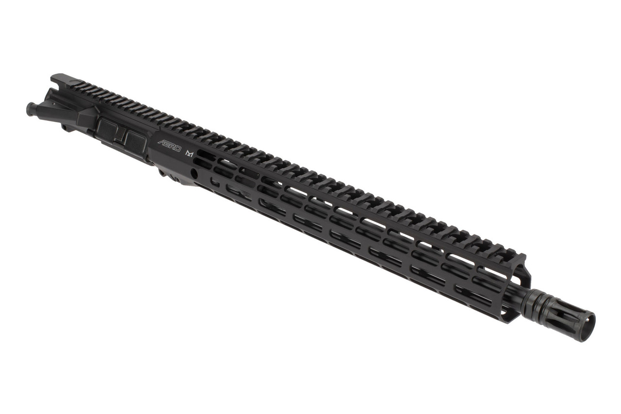 The Aero Precision AR-15 barreled upper receiver is built around the M4E1 Threaded upper receiver designed for use with standard barrel nut setups. The receiver is forged from 7075-T6 aluminum and precision machined to M4E1 specs to ensure proper fit with Mil-Spec and aftermarket parts. It is matte black hardcoat anodized and features laser engraved T-marks. This 16″ .300 Blackout barreled upper comes with the Atlas R-One M-LOK free float handguard with a full length picatinny top rail and a slim 1.3″ inner diameter.