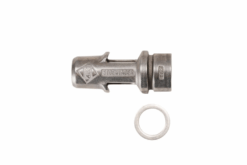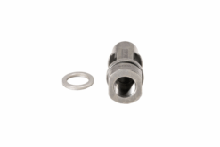 ALG Defense’s Sidewinder® Muzzle Brake is machined from 17-4 Stainless Steel and fits ½-28” threaded 5.56mm barrels. Vents angled upward at the 3 and 9 o’clock locations deflect gas to the sides, away from the ground, reducing the dust and debris signature when firing from the prone position. The vents are also larger on top than on the bottom, providing muzzle-rise compensation for the ALG Sidewinder 5.56. Twin-angled canards in front of the vents boost the recoil-dampening effects of the ALG Sidewinder 5.56 by increasing the forward surface area while still keeping a slim, minimalistic profile.