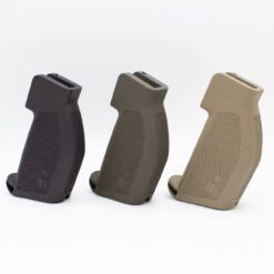 Some customers have also told us they like the grip style but don’t want the thumb shelf. We are happy to oblige. This unique AR grip is also available without the thumb rest. This version of the Alpha Grip is ambidextrous, while still offering stippling and a palm shelf.