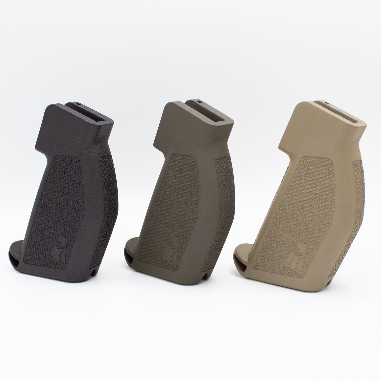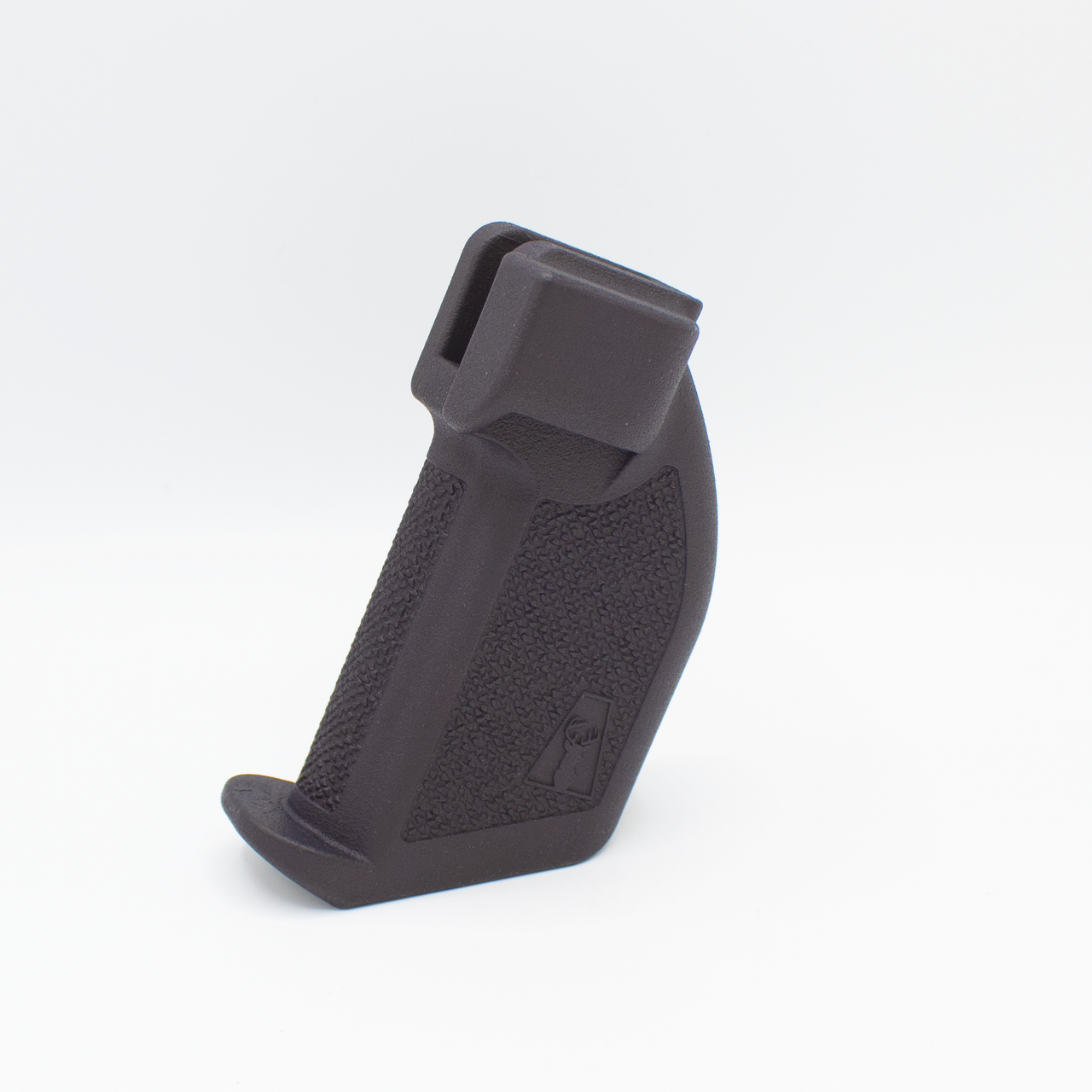 Unlike the Penguin grip, this one features a thumb shelf with slightly more length to help you achieve a straight pull on your trigger with every shot. The days of pulling shots one way or the other will be a thing of the past. If you prefer not to use the thumb shelf, an alternative is a smaller shelf on the opposite side, providing a more traditional-style grip. Additionally, we have upgraded the rifle grip with stippling, providing a no-slip grip and anti-fatiguing palm shelf. The Alpha Grip is lightweight and compatible with any AR-style rifle. It is the perfect add-on for your precision bolt-action rifle.