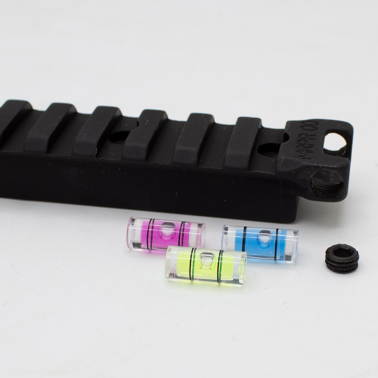 - Removable Bubble Level for Enhanced Accuracy: Built into the rail, the bubble level helps shooters maintain horizontal alignment, improving precision at any distance. The level is easily removable and interchangeable, with green as the standard color and optional blue and pink levels available.