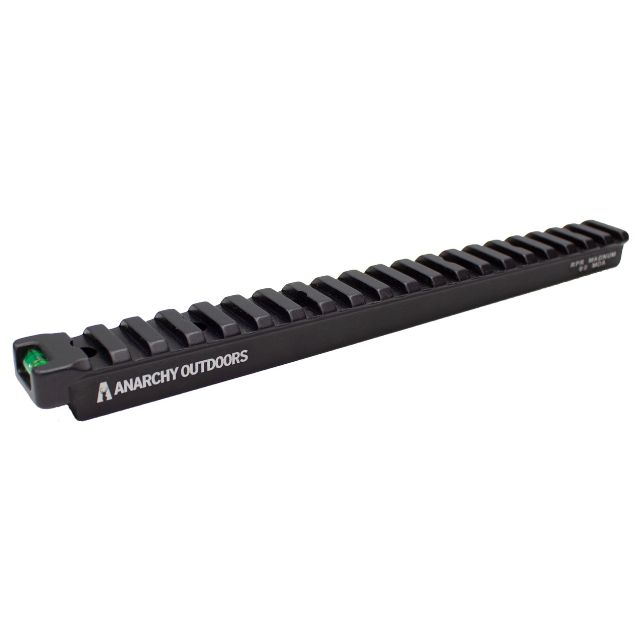The Anarchy Outdoors Magnum RPR Scope Base provides a stable and customizable optic platform, enhancing both functionality and style. With multiple MOA options, a removable bubble level for accuracy, and high-quality aluminum construction, this scope base delivers reliability and precision for your Magnum Ruger Precision Rifle.