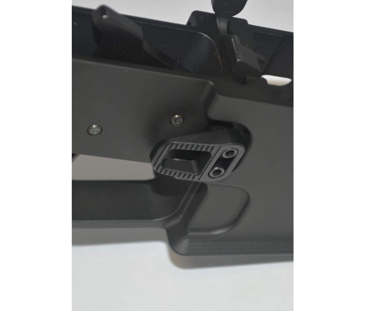 The Armaspec B2 is a skeletonized extended magazine release designed to extend the length of the factory button. The Armaspec B2 makes it easier to release the magazine without requiring a change in grip position. It’s compatible with 5.56/.223 and 7.62/.308 receivers.