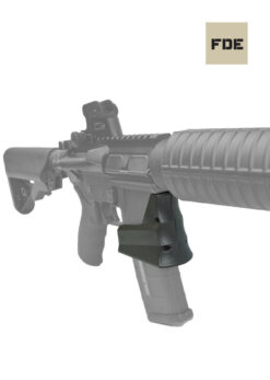 The Rhino R-23 tactical magwell grip and funnel are designed to significantly improve magazine reload speed and firearm handling. The Rhino reduces magazine change times on average by 48%, without ever requiring you to take your eyes off your target. The magazine well grip provides you with complete control of the weapon, whether in close-quarters battle (CQB) or malfunction situations. Made from reinforced polymer, the Rhino magwell attaches to standard AR15/M4 lower receivers without any permanent modification to the weapon.