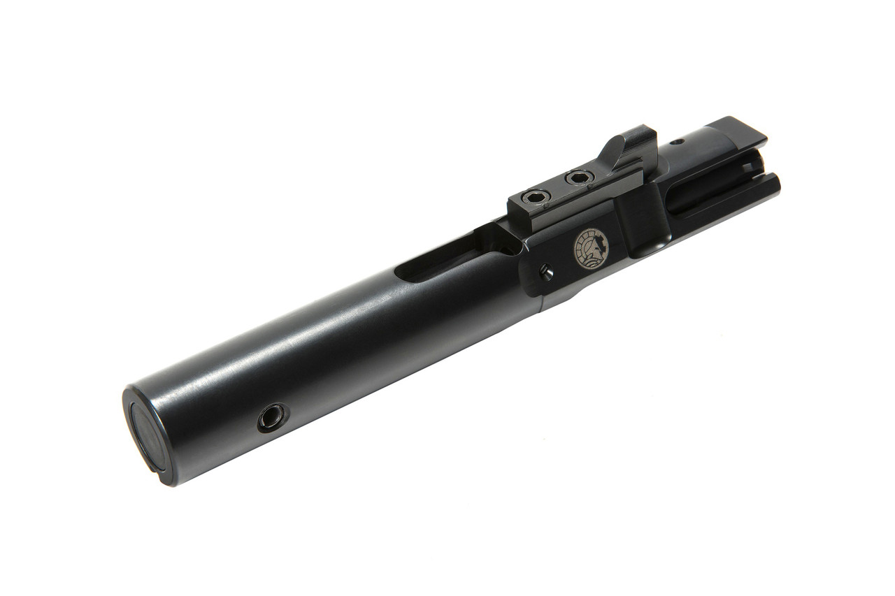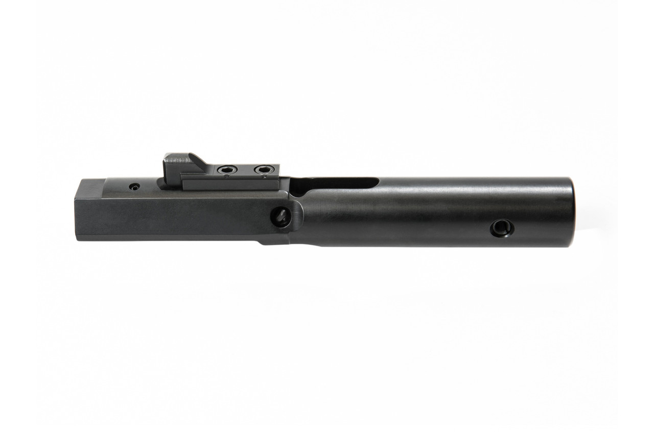 Enhanced 9mm Blowback AR-15 Bolt Carrier Group is compatible with both COLT and GLOCK magazine configurations. Features reliable AR-15 style extractor claw with O-Ring and spring and broad trigger compatibility with ramped bottom geometry. Charging handle interfaces directly on bolt carrier surface that can withstand vigorous pulling force without the worry of shearing off the carrier key. Reinforced firing pin is held in place with standard firing pin cotter pin.
