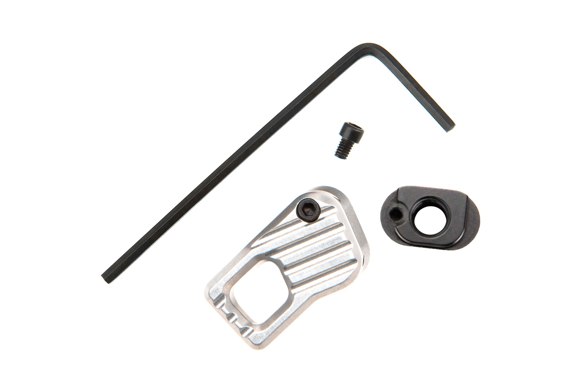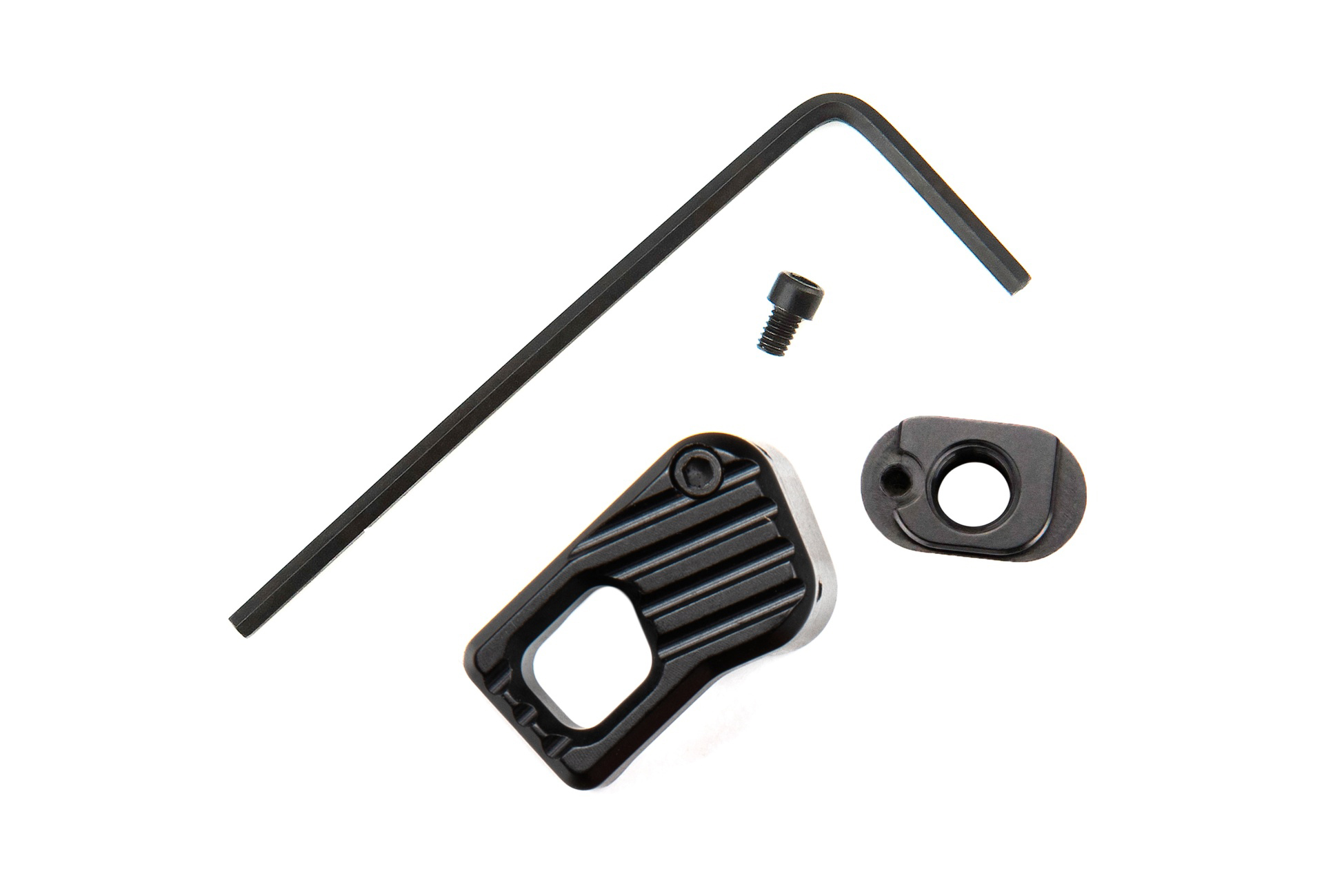 The Battle Arms Development Aluminum Enhanced Modular Magazine Release features a unique three sided dovetail finger pad attachment that is low profile and lightweight, yet has maximum strength for durability. These Pistol Parts by Battle Arms Development are precision CNC machined from billet 7075-T6 aluminum and have excellent ergonomics for easy operation without needing to shift grip position. Choose the Battle Arms BAD-EMMR Extended Magazine Release for a flexible and robust design.