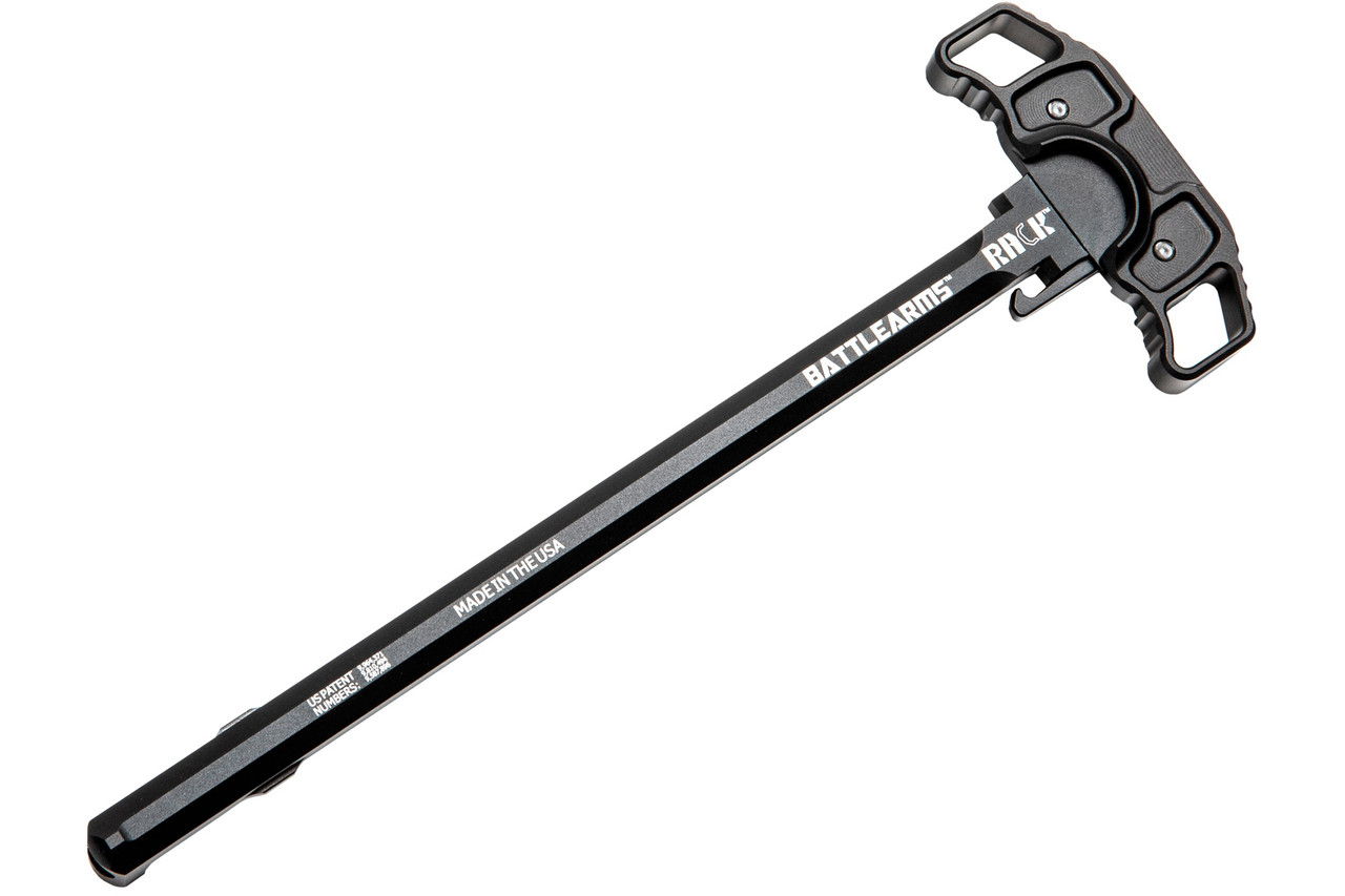 The RACK Ambidextrous Charging Handle was developed by BATTLEARMS to be the finest charging handle ever produced! It is the toughest available for the AR-15, AR-10 and 9mm AR PCC platforms. The RACK charging handle is simplicity at its best with only three major components. Unlike other charging handles, the RACK makes no contact with the sides of the receiver preventing wear on the receiver and charging handle. Not only is it fast, buttery smooth, it also minimizes wear to the upper receiver with it’s side-sliding unlocking action. The RACK is no doubt the new heavyweight champion among all other ambidextrous charging handles. Engineered to withstand the abuse of downrange use!