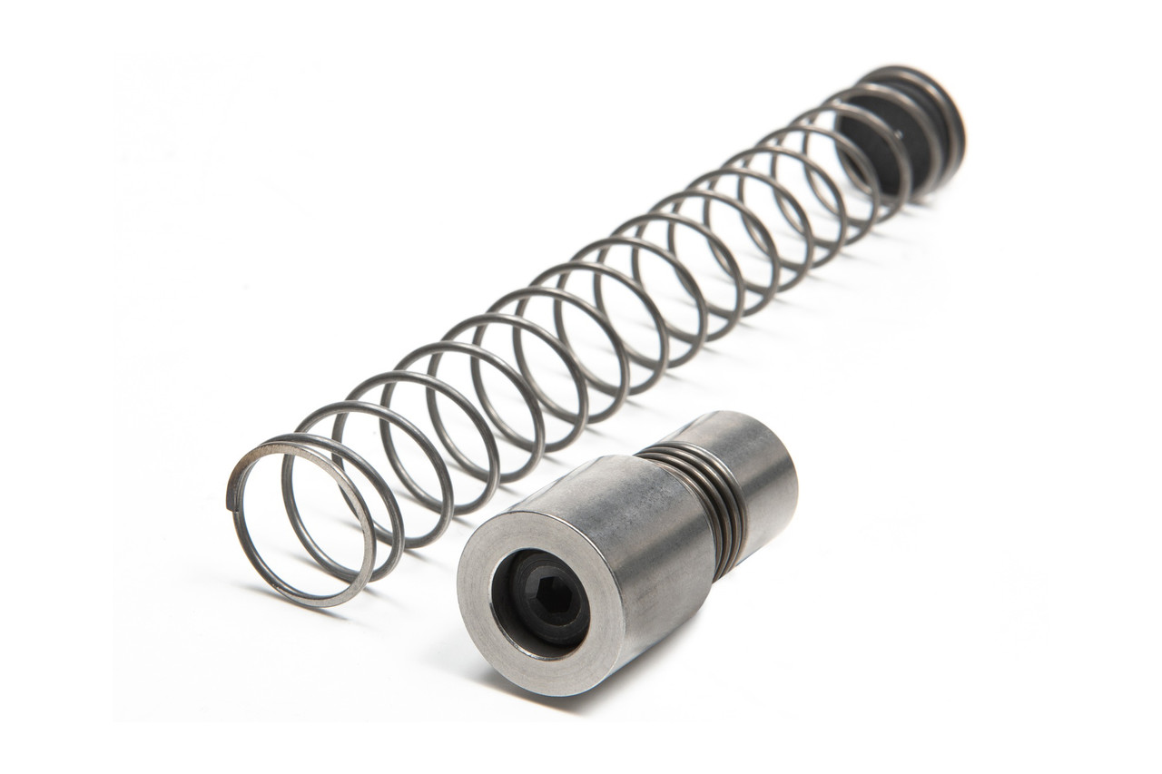 The new BAD-VTS Buffer Spring enhances reliability in the shortest buffer tubes without impacting the tuning of the slide. The spring will allow the shooter to push the operating limit of the hammer down quicker, and also assist in slowing the rate of fire without adding extra strain on the shooter’s shoulder. The primary spring is selected dependent on the users strength and the reciprocating mass of the buffer spring. The stronger springs will have a heavier pound rating and thus require less maintenance. The ‘V’ shape retains the geometry of the slide for the best recoil control and accuracy. The ‘V’ shape does not work as well with some buttstock configurations