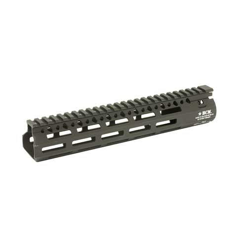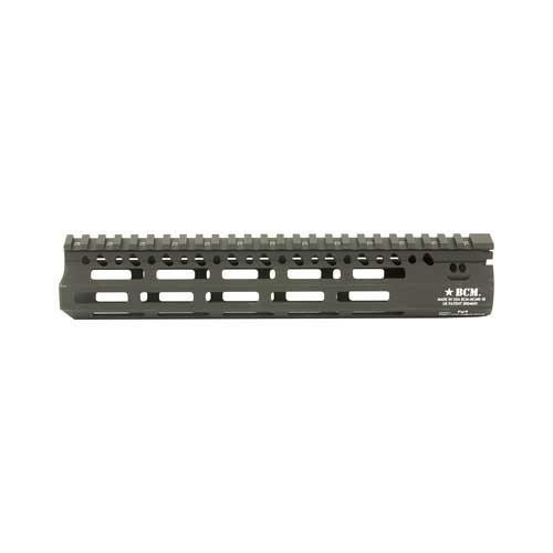 Bravo Company’s BCM MCMR-10 M-LOK Compatible Modular Rail Handguard features the same industry leading barrel nut and lock up design as originally introduced on BCM’s evolutionary KMR handguard. The MCMR Series of handguards gives the shooter modularity in the M-LOK platform. This proprietary patented mounting system (US Patent 8904691) includes a mechanical index to the 12:00 rail and positions mounting hardware to mitigate the movement caused by heat generated by the weapon system. It is made from Precision Machined Aerospace 6061-T6 Aluminum Alloy for high strength and is lightweight. The proprietary engineered profile offers additional cross sectional strength. The actual length when measured to flare is 10.5 inches and is designed to be used with pistol length, carbine length, or mid length gas systems; all with a low profile gas block.