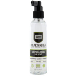 Our Breakthrough Clean Technologies® Military-Grade Solvent is a user-safe multi-purpose cleaner and degreaser that helps remove oil, grease, and carbon build-up, giving you a no-residue clean. Unlike other aromatic cleaners, our odorless formula allows you to clean indoors without having to deal with noxious and unpleasant fumes. Breakthrough Clean Technologies® Military-Grade Solvent cleans quickly and efficiently while reducing the frequency needed between cleanings. It will not stain your wood, plastic, or polymer components and is also safe on Cerakote and hydro-printing. Breakthrough Clean Technologies® Military-Grade Solvent is a benzene-free, HAP-free, state-of-the-art solvent designed to help users break out of the tangle of regulations regarding emissions, disposal, and industrial health hazards. Our Breakthrough Clean Technologies® Military-Grade Solvent is an odorless, low-toxicity, high-purity hydrocarbon that exhibits a very low degree of irritancy to the eyes and is non-irritating to the skin. It has a low vapor pressure to control Volatile Organic Compound (VOC) emissions, is non-carcinogenic, and is not regulated under SARA, Title III, Sections 302 or 313, CERCLA, and RCRA requirements. Breakthrough Clean Technologies® Military-Grade Solvent has no listed components or characteristics of hazardous waste per the EPA. Breakthrough Clean Technologies® Military-Grade Solvent has been awarded a complete Toxicity Clearance by the U.S. Army Center for Health Promotion and Preventative Medicine.