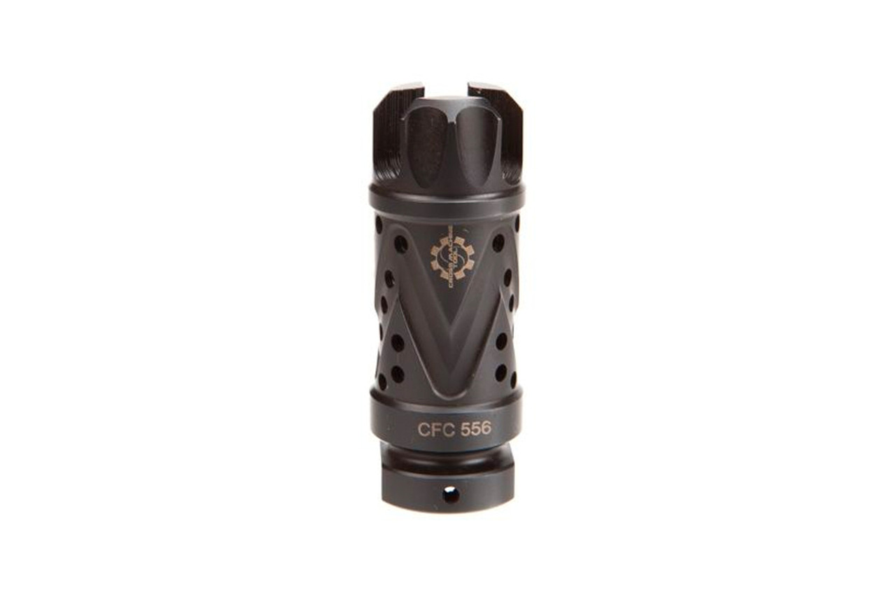 The CFC 556 (Combat Flash Compensator) A.K.A. the ZCOMP™ is a Hybrid muzzle device.The CFC 556 is designed to reduce and distort visible muzzle flash, reduce muzzle rise & mitigate felt recoil. Function of the CFC 556 muzzle device is equaled by the exceptional visible manufacturing quality & appearance of the muzzle device.