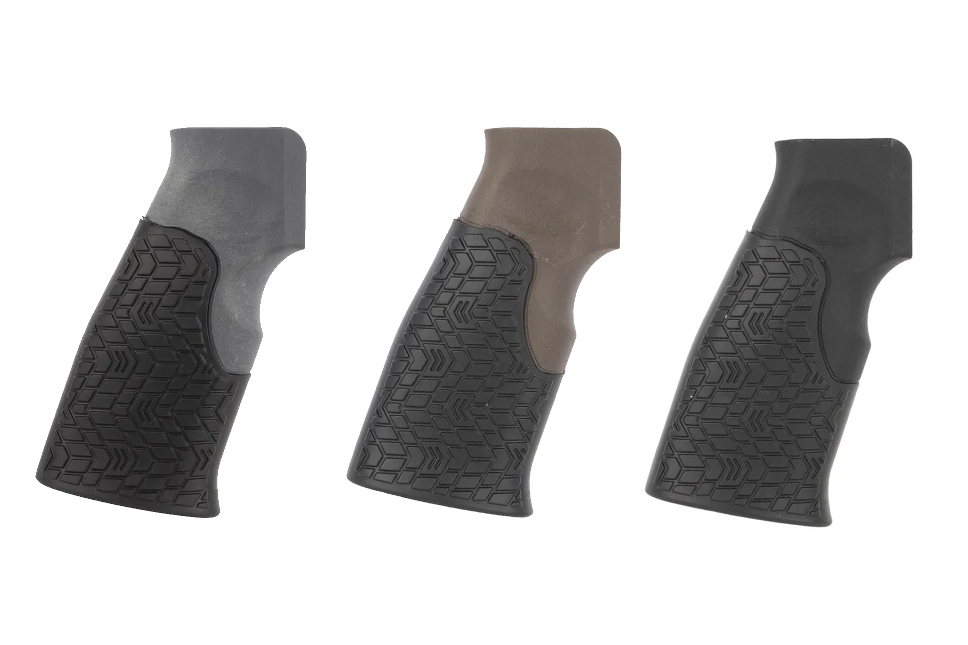 This Daniel Defense overmolded rubber pistol grip is designed for increased ergonomics and functionality. It’s more than just a grip, featuring an internal storage compartment for an oil bottle or extra batteries, ensuring your optic and rifle always run smoothly. Even the grip angle was specifically chosen to achieve the most natural hand position, thereby reducing fatigue over extended periods. The rubber overmolded section ensures a proper grip, regardless of the environmental conditions. This pistol grip is available in multiple colors, along with an option for an integral trigger guard. If you are looking to upgrade from your Mil-Spec A2 grip, check out the Daniel Defense AR pistol grip.