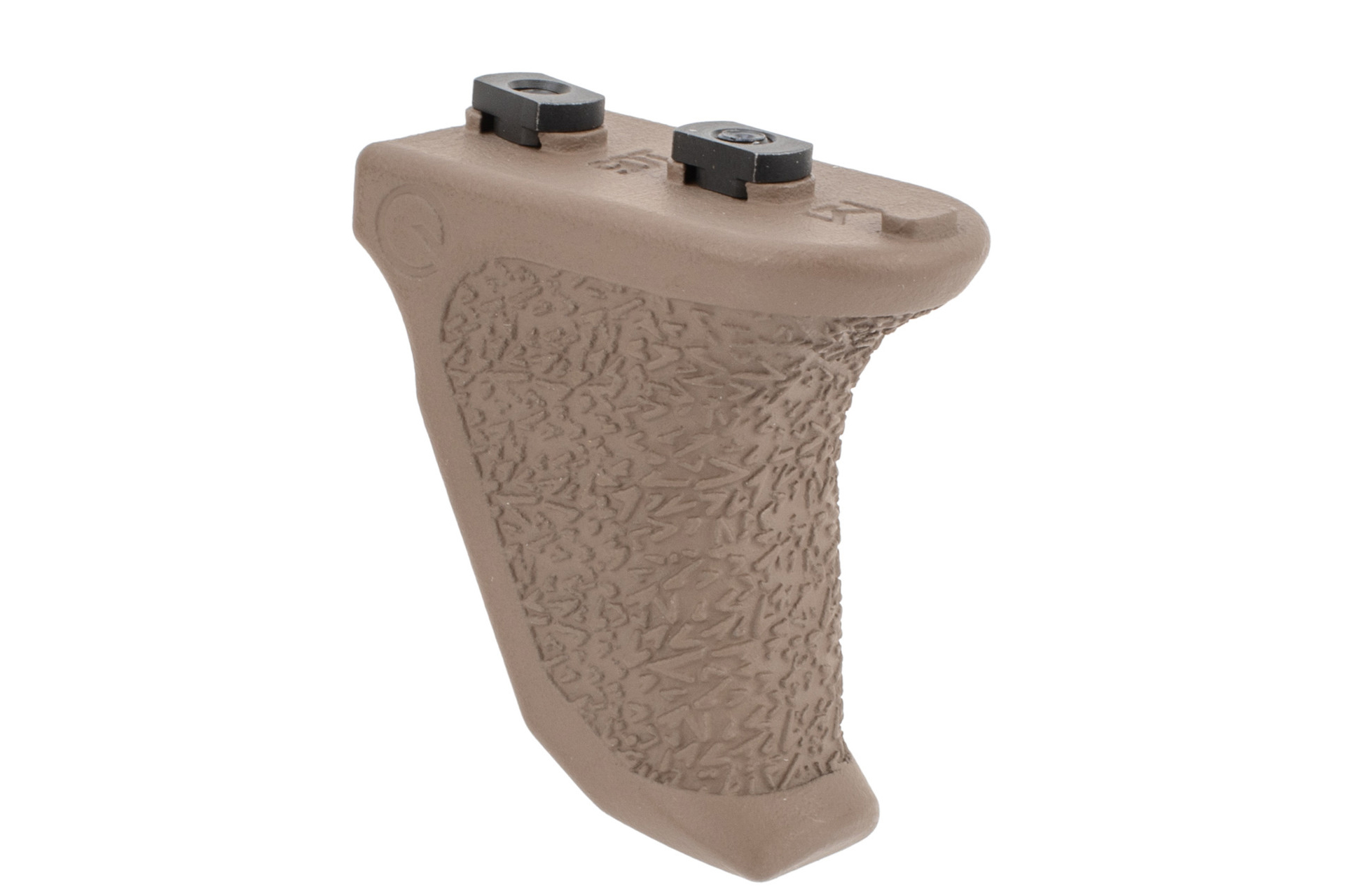 The Emissary Development Handbrake features a forward-swept angle designed for better ergonomics. Its modern grip on your firearm allows you to pull back against the hand stop and keep the rifle tight against your body. With your support arm farther forward, it gives you better control over recoil. The Handbrake is made from high-density polymer with a textured grip, beveled edges, and a non-slip bottom ledge. It is lighter than similar types of angled grips and attaches directly to your M-LOK or Picatinny-based handguard.