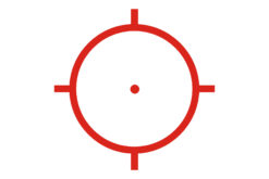 The 68 MOA ring with 1 MOA dot is ideal for fast target acquisition. It provides three usable aiming points: 50 and 200 yards at the center dot and 7 yards at the bottom of the circle.