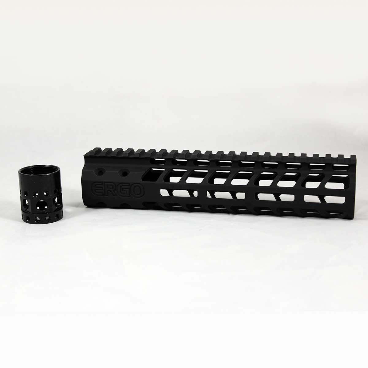 The ERGO SuperLite Modular M-LOK Rail System features M-LOK slots located at the 3, 6, and 9 o’clock positions, allowing users to run with or without rail covers (4332-4PK).