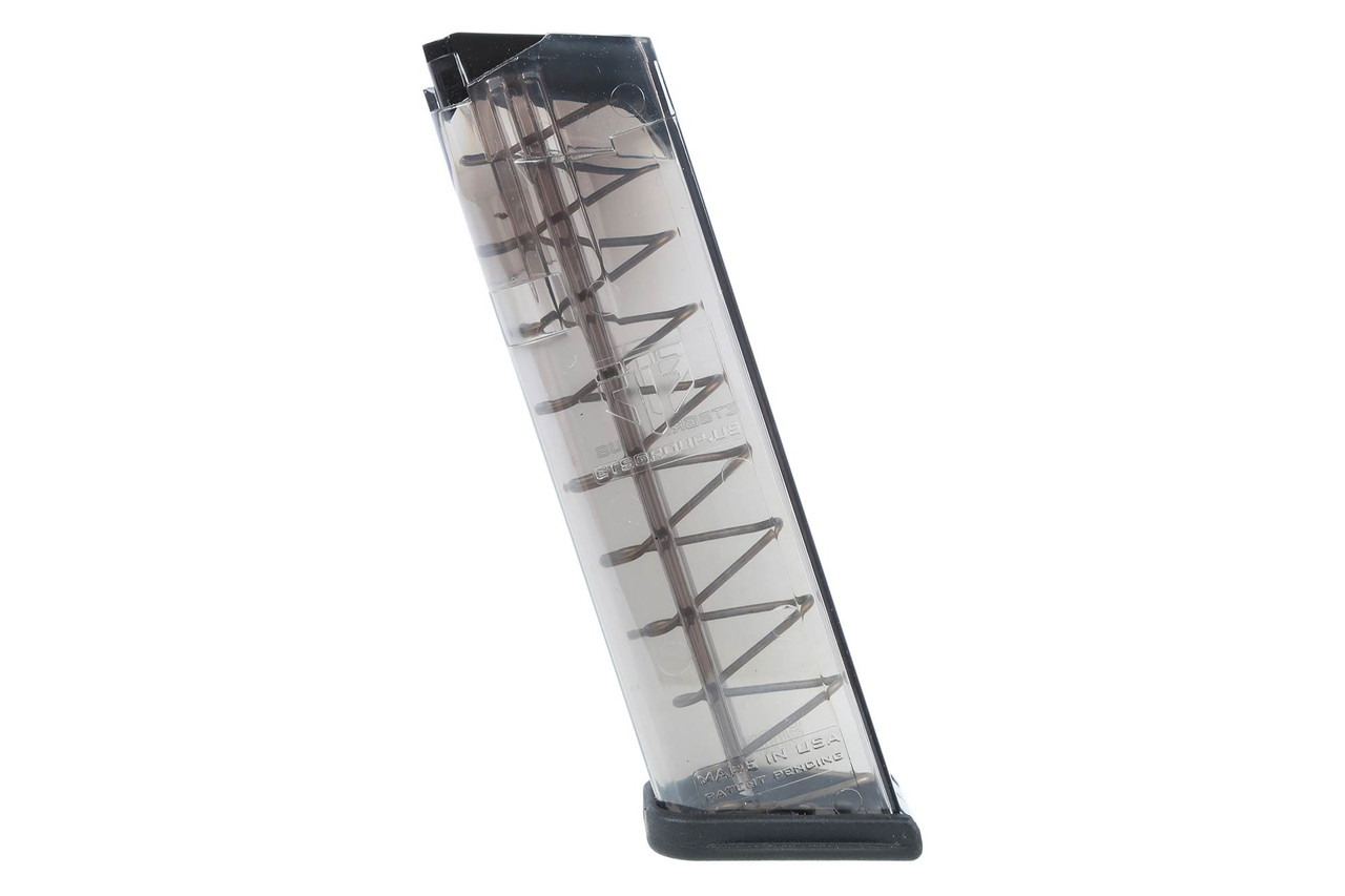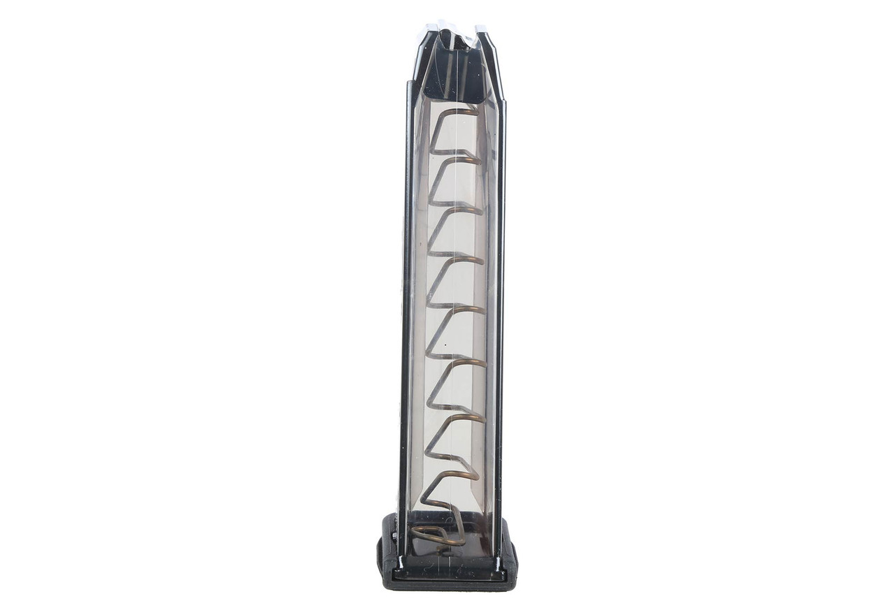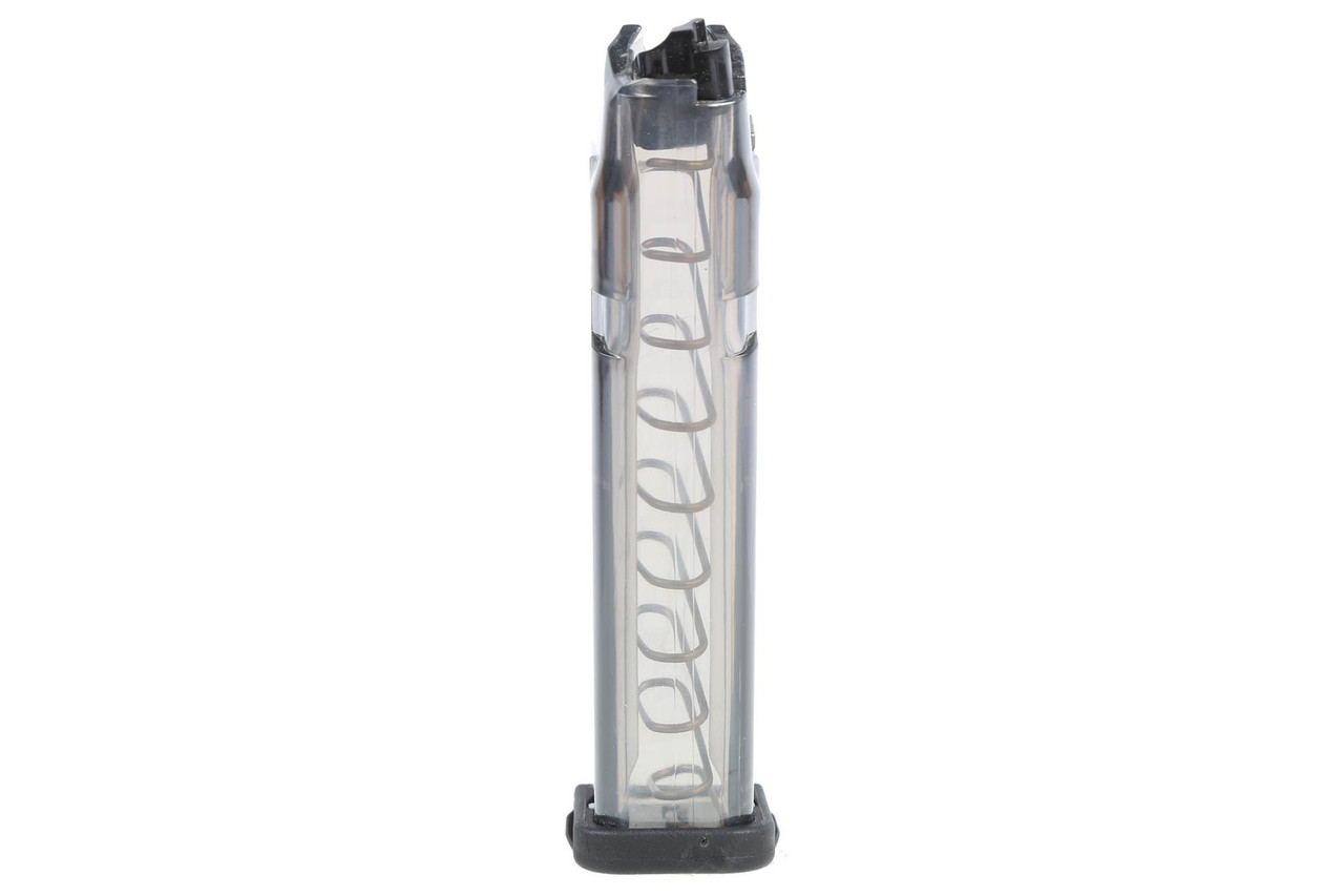 This ETS Group magazine for GLOCK 17 is a 10-round translucent polymer magazine compatible with every generation of 9mm double-stack Glock handguns. The proprietary polymer construction is highly resistant to impacts, temperatures, UV, and harsh chemicals that can adversely affect many other polymer magazines. Unlike many other aftermarket magazines for the Glock, the ETS magazines are fully compatible with both Glock and aftermarket floor plates. Not compatible with the Glock 43.