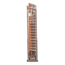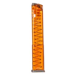This ETS Group magazine for GLOCK 18 is a 32-round translucent polymer magazine compatible with every generation of 9mm double stack Glock handguns. The proprietary polymer construction is highly resistant to impacts, temperatures, UV, and harsh chemicals that may adversely affect many other polymer magazines. Unlike many other after-market magazines for the Glock, the ETS magazines are fully compatible with Glock and aftermarket floor plates. This is a 32-round, full-capacity 9x19mm magazine.