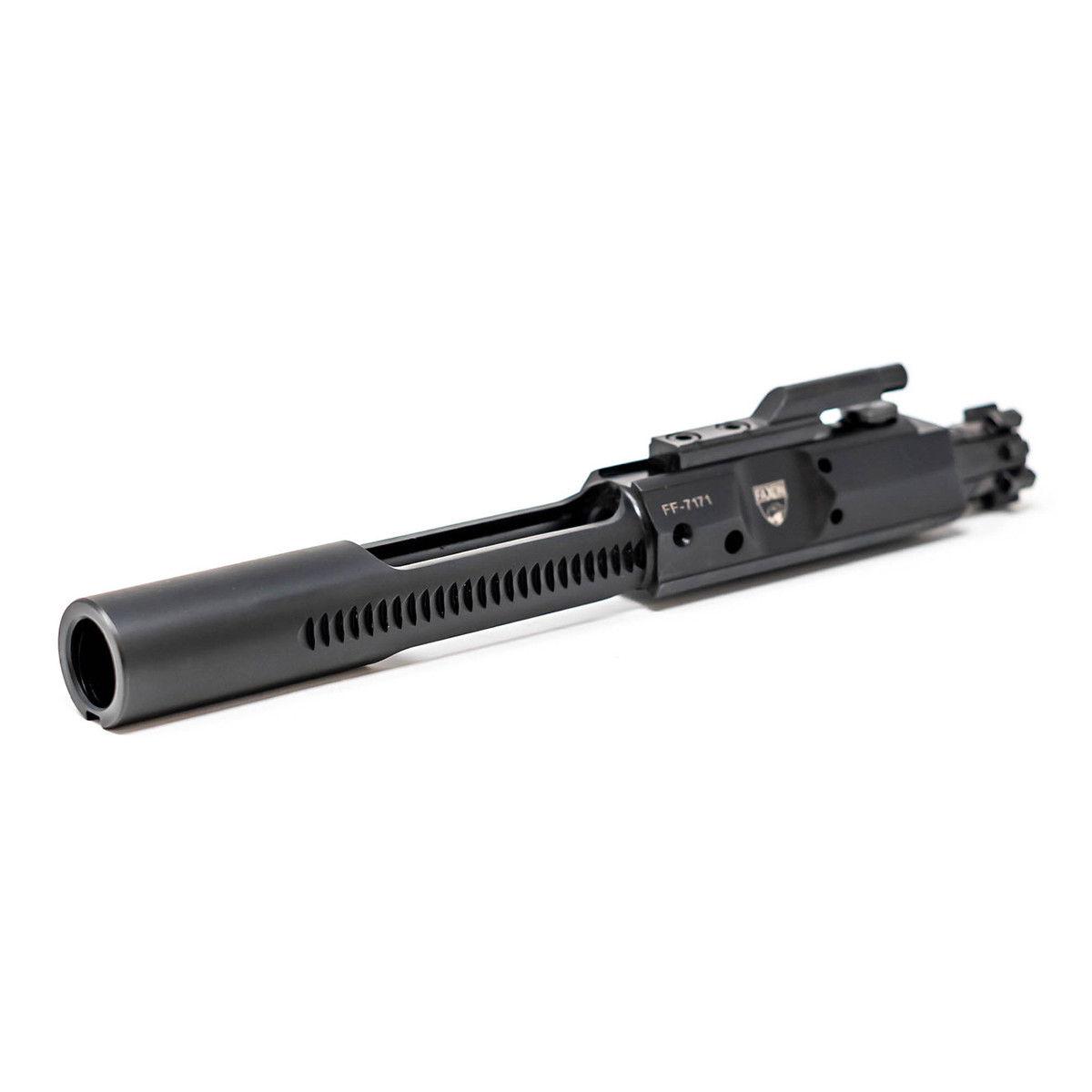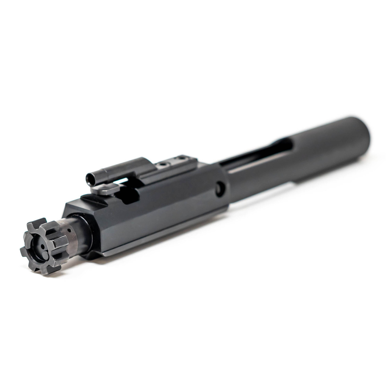 Improvements include using 9310 tool steel for the bolt, nitriding the assembly to increase surface hardness, decrease resistance, and have superior corrosion resistance compared to typical chrome and phosphasted bolt carrier groups. All bolts are fully MPI tested to ensure the material is sound and without defects. Bolt lugs are chamfered 45 degrees to ensure reliable action for even the highest pressure hand loads and fast lightweight actions.