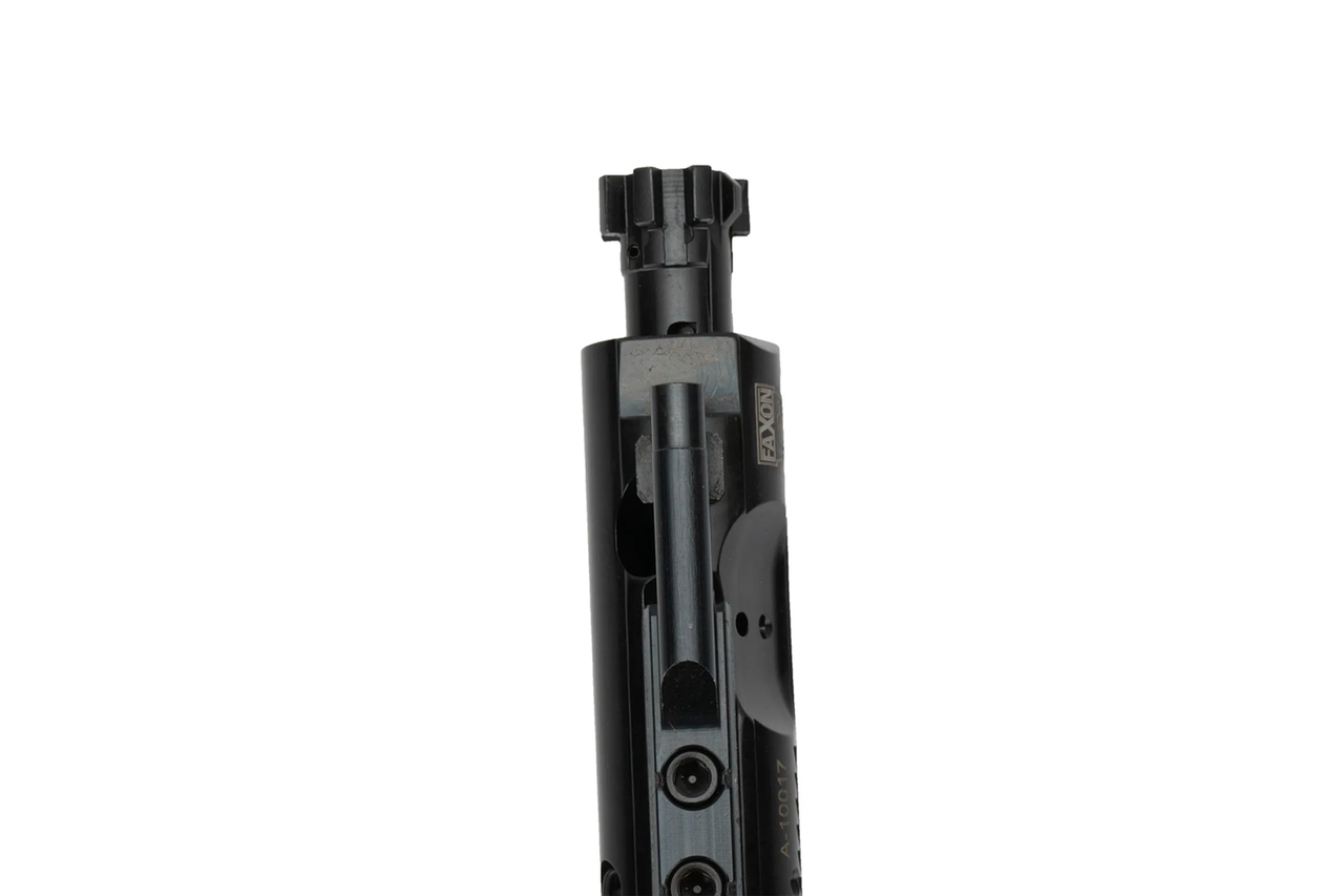 The Faxon Firearms 7.62×39 Bolt Carrier Group is designed for long lasting reliability. The Bolt itself is made out of 9310 tool steel and Nitride coated to increase surface hardness even more. Additionally, they are shot peened and magnetic particle inspected to ensure safe and reliable function for thousands of rounds. The locking lugs are chamfered by 45 degrees to improve lockup for improved function and reliability with high pressure rounds. The extractor is made from S7 steel, which is optimal for resisting the violent shock of pulling cartridges out of the chamber after being shot. The carrier also features the salt bath Nitride finish which increases surface hardness and lubricity for smooth function and ease of cleaning. This 7.62×39 AR-15 bolt carrier group is full auto rated and is great for your next build.