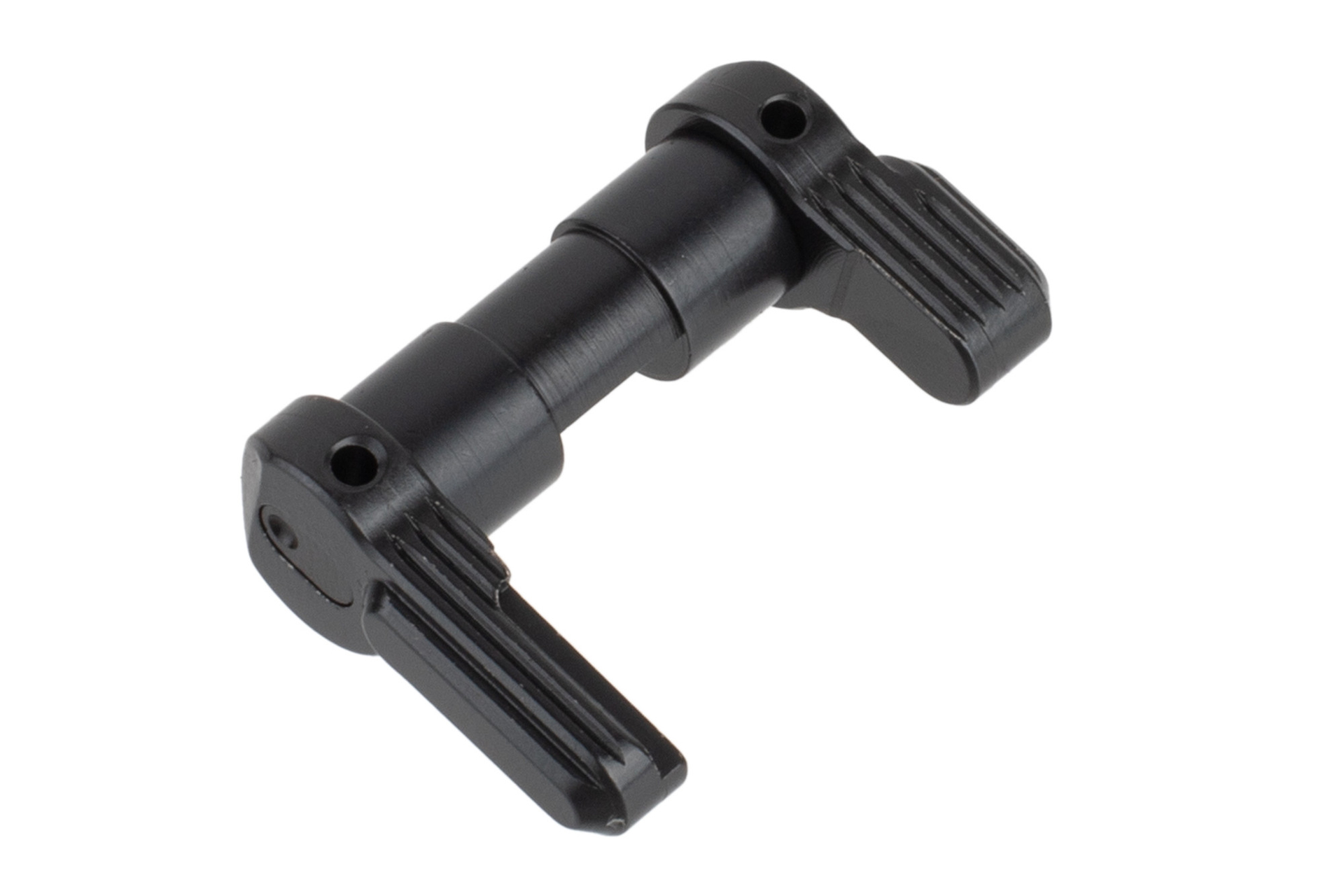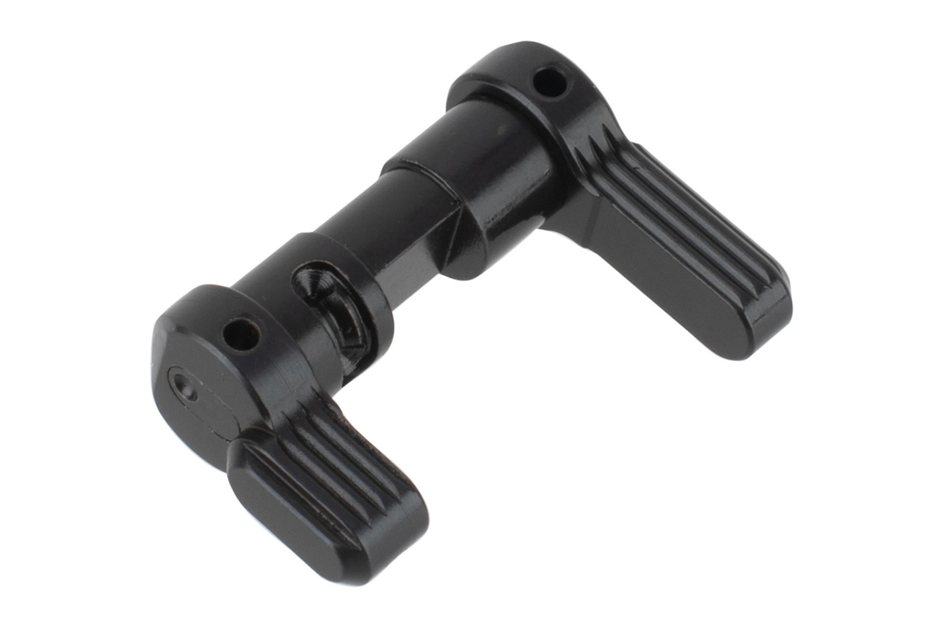ASF was designed from the ground up to be a defense/duty/combat safety selector, its mission is quite aptly reflected by the way its levers are attached the center, via a stainless steel roll pin. The lever to center interface is immensely strong, the high shear strength (800 lbs) 420 stainless steel spring steel roll pin simply holds the two in place, and doesn’t handle any load. One of the design goals dictates there be no wobble between the lever and center, we’ve called for very tight tolerances (+0.001/-0.00) on ASF’s lever and center interface to achieve that.