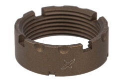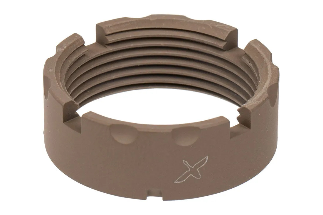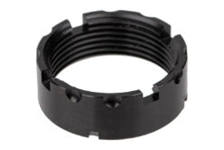 Military specifications require castle nuts to be staked in two locations to ensure the castle nut and buffer tube will not loosen without deliberate action, and FCD believes this is one of those points where less is definitely not more. Traditional MIL-SPEC castle nuts have 3 staking notches, the CNF features 4, ensuring at any time three are available to be used. Each notch has also been upgraded to a deep, 30-degree cut, making them 25% longer than MIL-SPEC to ensure enough material can be staked into the notch for secure installation. To make threading the castle against the end plate even easier, the outer edge features coarse serrations.