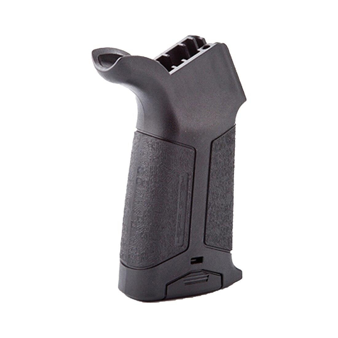 The HERA USA H15G grip is made of fiberglass-reinforced polymer to improve impact resistance. The H15G pistol grip provides an internal storage place for storing small items such as batteries. In relation to its weight, it is one of the most stable pistol grips on the market. THE H15G grip is designed to be used with AR 15/M4 systems that feature a standard mil-spec receiver. The H15G grip can also be used on systems using a grip interface compatible with the AR15/M4 systems.