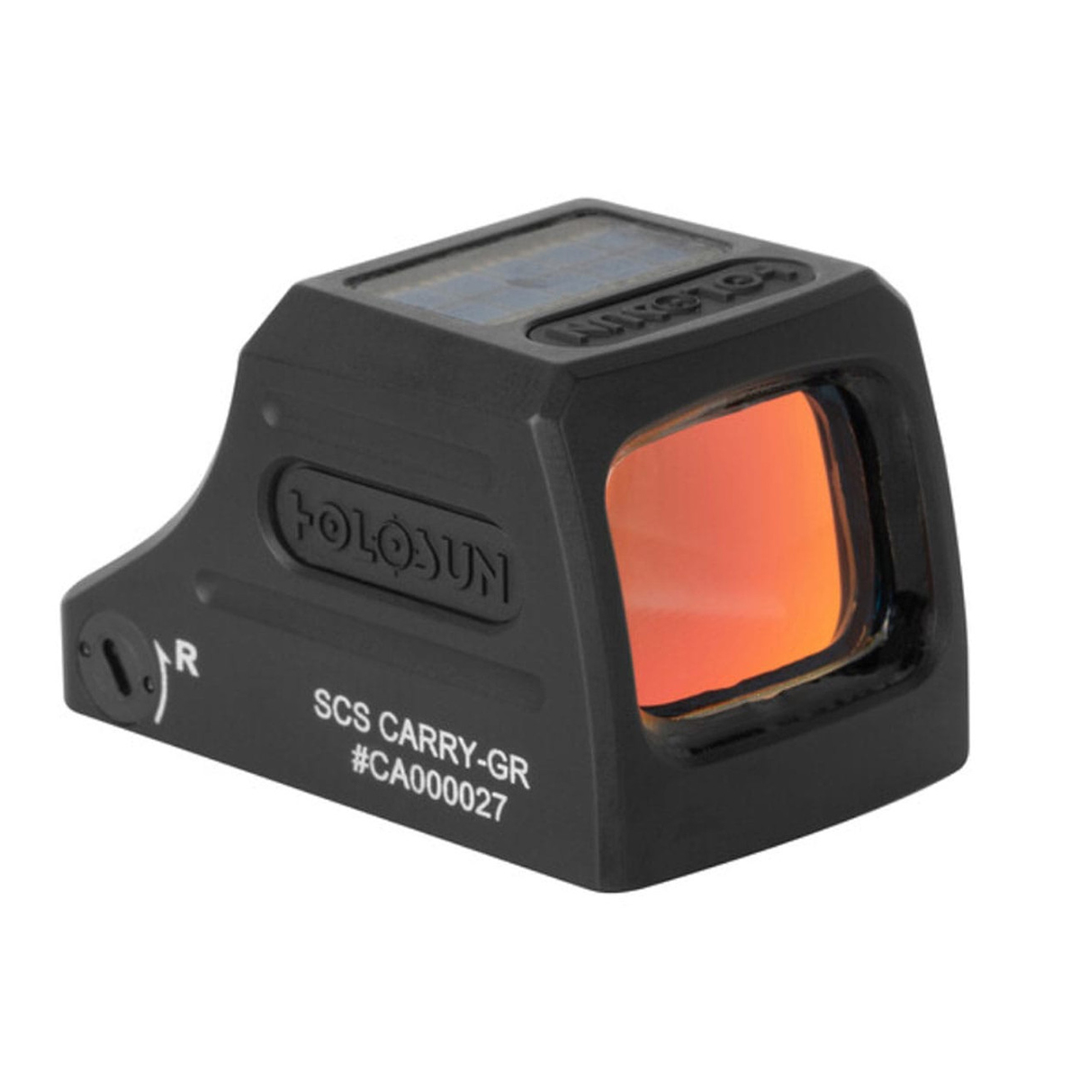 The HOLOSUN SCS Carry 2 MOA Reticle Green Dot Sight is a direct attachment optic for slim, carry-sized sub-compact handguns. It is designed to attach directly to HOLOSUN-K slide cuts, or to RMSc cut slides with the included adapter plate.