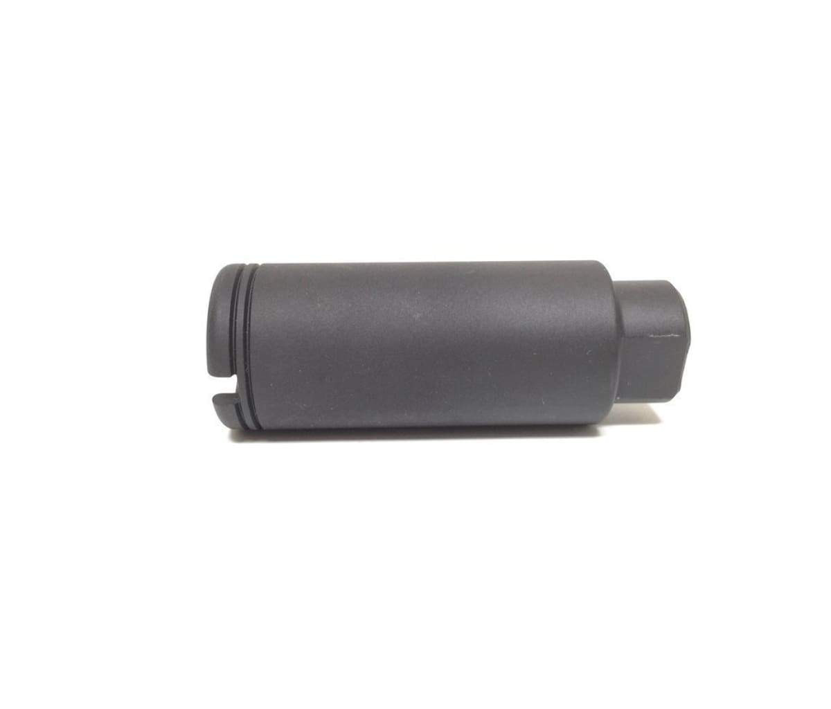 The flash can itself is machined from 6061 aluminum and is threaded for the 1/2×36 thread pattern found on many 9mm barrels.
