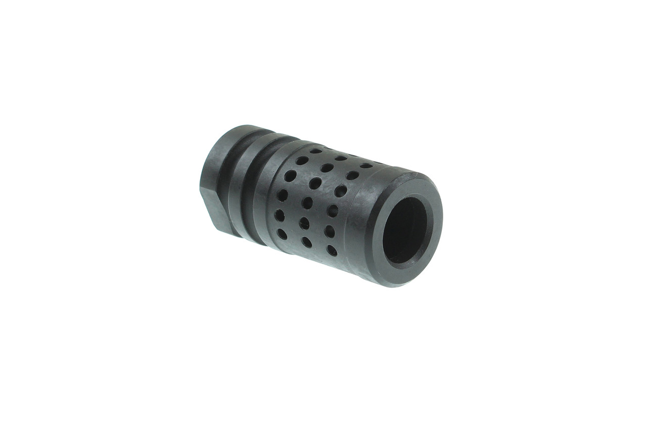 The KAK Industry 5/8×32 Compensator maintains the same size as an A2 birdcage while achieving remarkable performance. A closed face and gas ports in the upward position help direct expelled gasses to control muzzle climb and improve follow up shots.