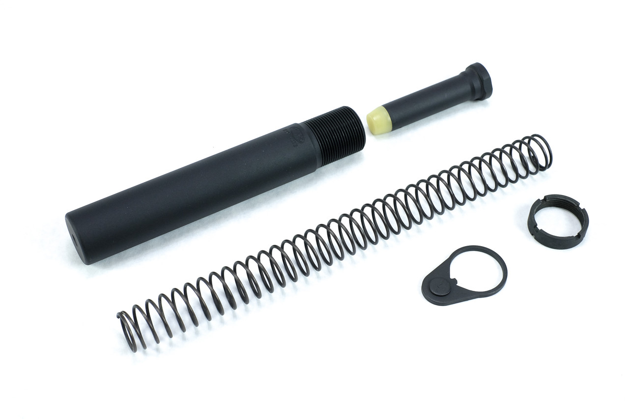 The KAK Shockwave Tube is an AR-15 Pistol Buffer Tube / Receiver Extension which is designed to work with the Shockwave Blade Pistol Stabilizer Brace but will also work for other pistol builds. It features an anti-rotation and anti-thrust design so that it’stays in place when being operated. The 12 adjustment dimples allow you to get a very rigid fit. This unit will attach with a standard mil-spec castle nut (not included) and will work fine with QD end plates.