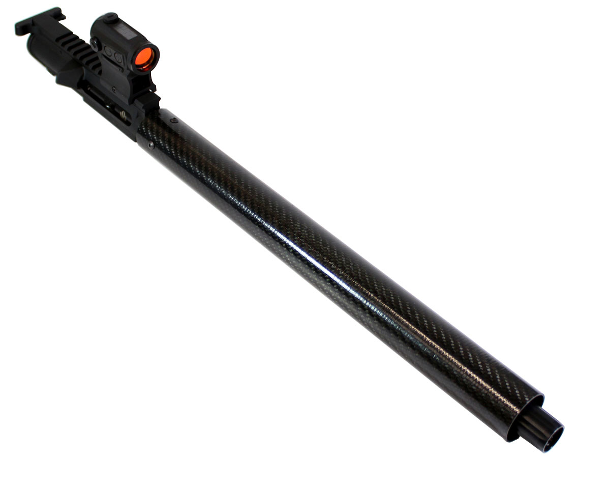 The Kaw Valley Precision Pistol Caliber Carbine Carbon Fiber Handguards are designed specifically for pistol-caliber AR builds. These lightweight carbon fiber handguards feature a 1 5/8″ outside diameter, providing the thinnest, lightest, and strongest handguard possible while still allowing clearance for most muzzle devices, including the KVP Linear Comp, KVP XL Linear Comp, etc.