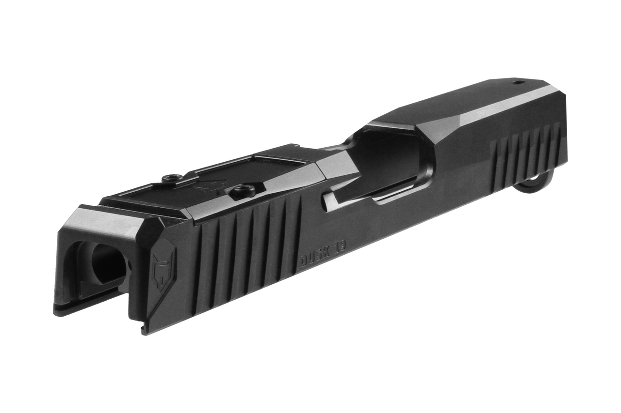 The DUSK19 slide is made of 17-4SS and finished in either an attractive black nitride or a selection of great PVD options such as flat dark earth, oil rubbed bronze, or graphite gray. Front and rear serrations on the slide provide ease of chambering and press-check. The slide is reflex sight-ready with the DUSK19 optic cover plate included, which is compatible with both TRIJICON RMR/SRO® and HOLOSUN® 407/507/508 (Non-K Models) footprints.
