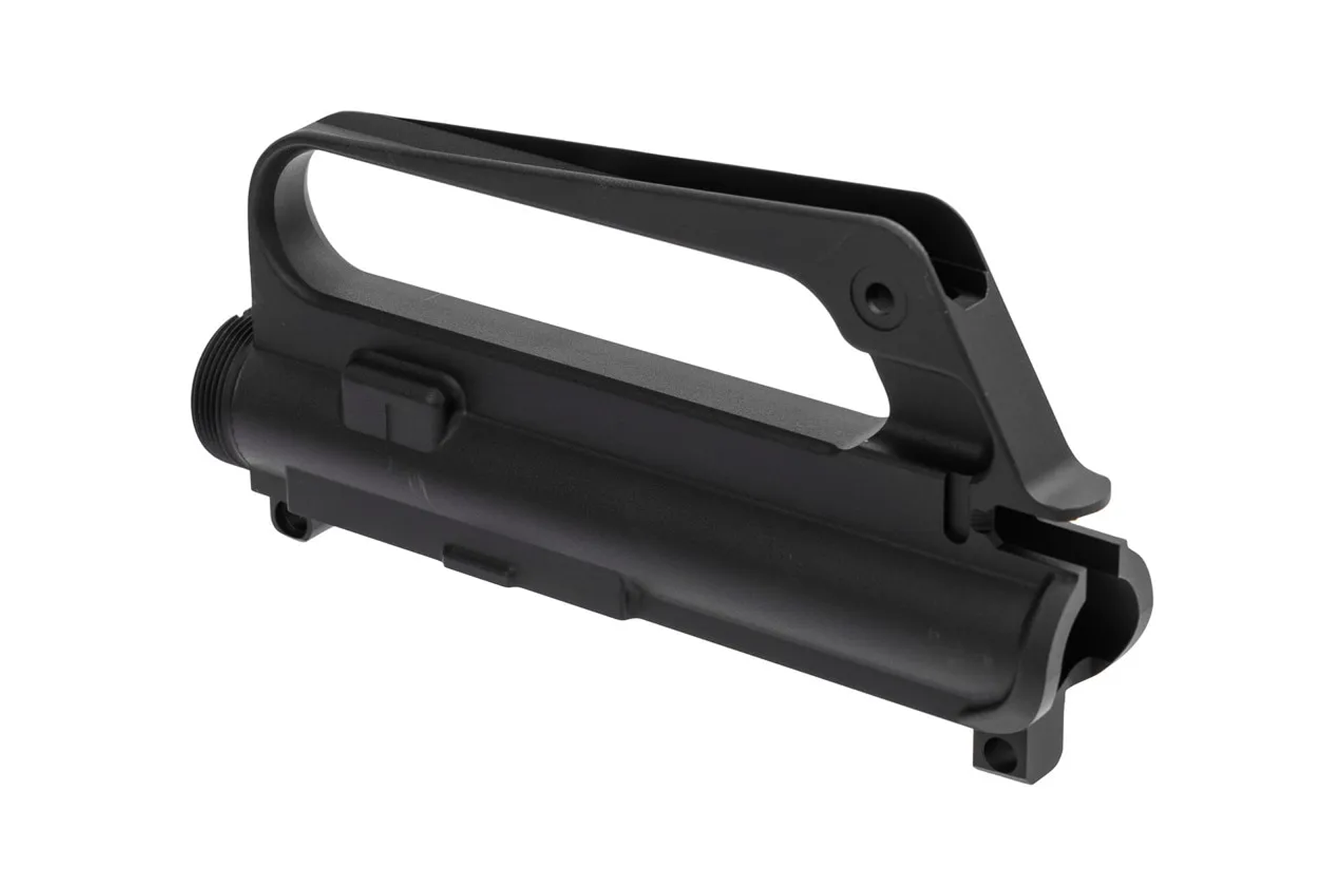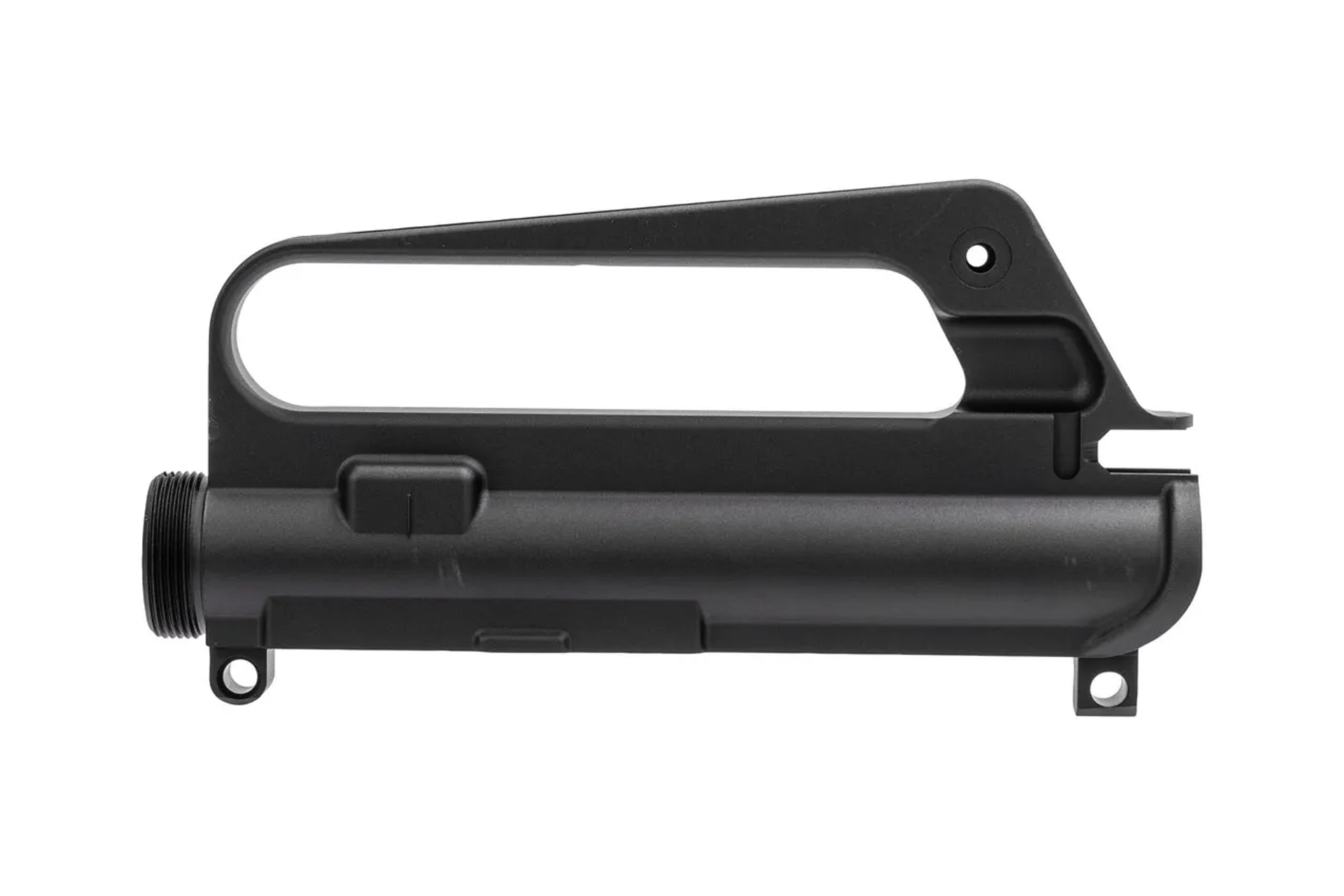 This is a stripped upper and does not include the rear sight assembly or dust cover, making it a great foundation for custom A1 builds where you want to select your own parts. It is also counterbored for a detent and intentionally does not include M4 feed ramps, consistent with the A1 pattern.