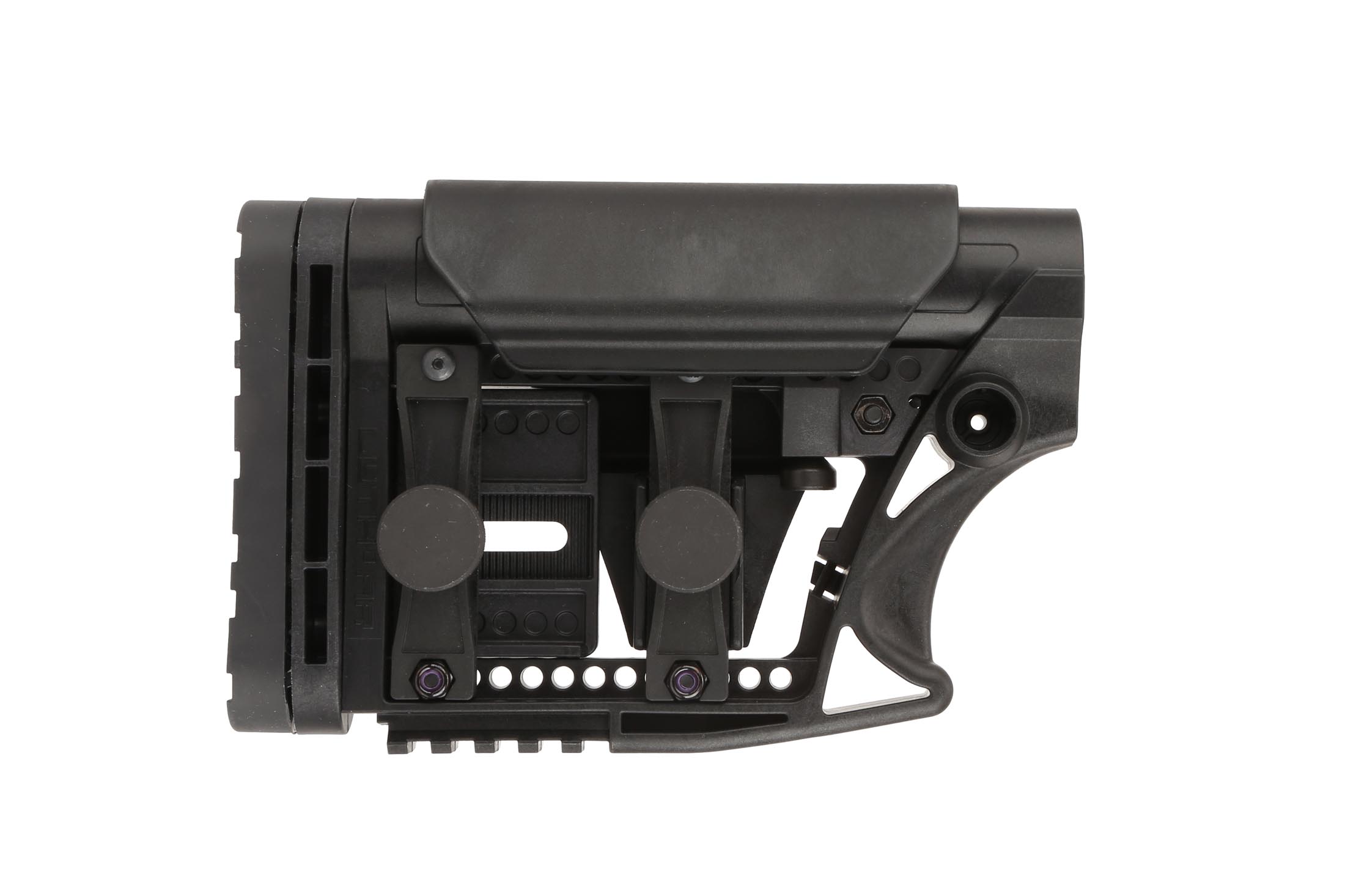 The modular buttstock assembly is ideal for building a carbine-length AR-10 battle rifle for recreational use at the range or for hunting hogs in the field. The buttstock features a bottom-mounted Picatinny rail for attaching monopods, providing extra stability when shooting prone or off the bench. It also features a socket that is compatible with the GT-CUP reversible quick-detach sling swivel mount for long hunts out in the field or long days at the gun range. Additional recoil pads in various styles and densities can be purchased to customize the feel of your rifle further.