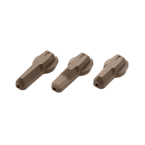 The Magpul ESK (Enhanced Selector Kit) – FDE is an innovative, modular selector system for AR pattern firearms, offering unparalleled customization and ergonomic handling at a competitive price point. This ambidextrous kit allows users to choose between 60- or 90-degree throw options with a reversible selector axle crafted from heat-treated chromoly steel and finished with QPQ for superior durability and corrosion resistance. It includes three distinct polymer levers – full-length, short, and hybrid – that can be mounted on either side according to the user’s preference, ensuring a precise fit without wobble. The kit also features customizable selector pins in black and red, serving as a secure locking mechanism and a visual indicator of the selector position. Easy to install with just a small punch or hex key for lever reconfiguration, this kit comes with a spring and a corrosion-resistant detent coated for low friction, guaranteeing smooth operation. The Magpul ESK is designed to fit Mil-Spec AR-pattern lower receivers and is proudly made in the USA. It is the perfect upgrade for those seeking advanced functionality and ambidextrous accessibility in their firearm accessories.