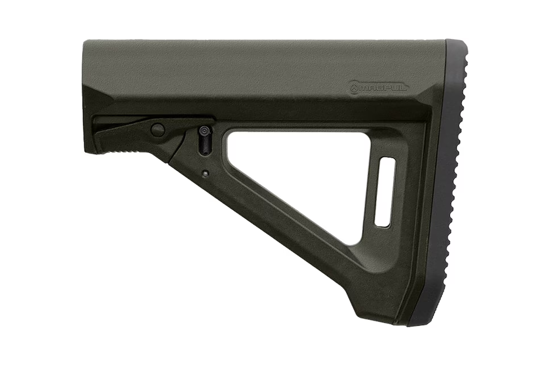 Magpul’s MOE RL Carbine Stock is yet another fantastic AR-15 stock design from the expert engineers at Magpul Industries. Based on the original MOE Carbine stock, the MOE RL Carbine has a new streamlined A-Frame design and some new features which make it a very modern stock option. First, the RL in the name stands for “Reversed Lever”. The reversed length of pull adjustment lever is oriented at the front of the stock and allows the user to make adjustments without needing to break their cheek weld. The cheek area also has an increased surface area, delivering an improved cheek weld over previous versions. Additionally, the MOE RL has versatile sling attachment options by way of an ambidextrous M-LOK slot at the rear. Use the slot as a sling loop and simply run your sling through the slot, or you can add an M-LOK QD Sling Mount (not included) for quick detach sling options. Versatile and aesthetically pleasing, the MOE RL Carbine stock is a welcome addition to the Magpul family of AR-15 stocks.
