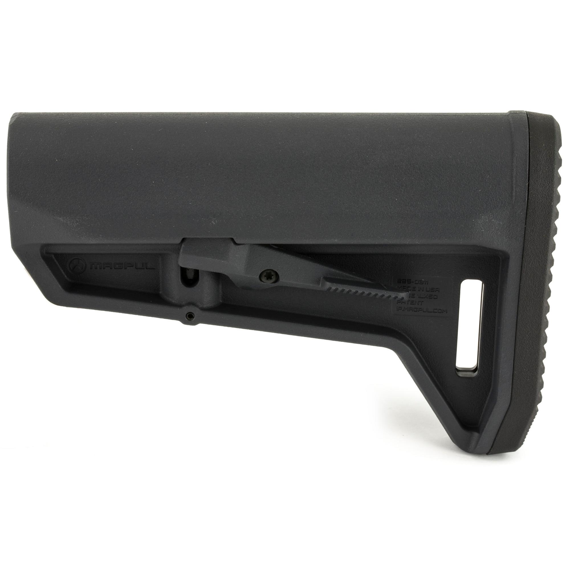 The Magpul MOE® SL-K AR 15 Stock is a drop-in replacement AR 15 buttstock for mil-spec AR 15/M4 carbine buffer tubes. The SL-K is designed for compact PDW-style weapons or for users who desire a small, light stock. Features a short and slim profile, a smaller rubber butt-pad with rolled toe for easy shouldering and sure grip, and a 1.25″ footman’s loop with the ability to accept an optional M-LOK QD Sling Mount for push-button style QD sling swivels. A new, unique, ambidextrous release latch minimizes rattle on the receiver extension without requiring additional locks, levers, or springs*.