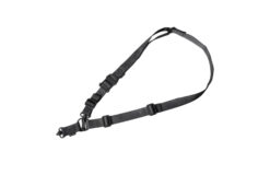 Filling the same mission requirement as the standard MS3 Sling, the MS4 can quickly switch between one-point and two-point configurations. The MS4 maintains material construction and specifications identical to those of the standard MS3, but instead of Magpul Paraclips, it features two heavy-duty push-button QD Sling Swivels along with a custom steel connection ring to allow one to two-point convertibility. This modification allows compatibility with QD sling cups commonly found on lower receivers, receiver end plates, buttstocks, and many low-profile forward QD Sling Mounts.