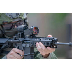 Successor to the M21 model used by the Israel Defense Forces and other military and law-enforcement agencies, the Mepro22 Bullseye 3.5/40 Red Self-Illuminated Reflex Sight from Meprolight features a reticle with a twist: never needs a battery. The red circle dot reticle is illuminated during the day by fiber optic technology and at night by Swiss-made tritium vials with the transition occurring automatically based on ambient light. The waterproof Mepro22 features a quick release Picatinny rail mount. Impact point corrects at 1 MOA per click with a total windage and elevation range of 60 MOA. The sight is compatible with night vision devices and magnifiers.