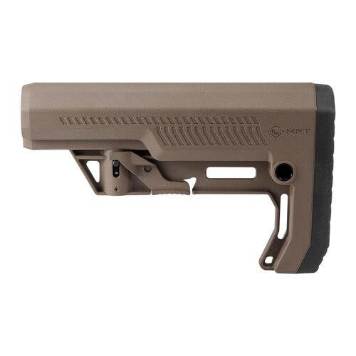 Building on the popular minimalist platform, Mission First Tactical (MFT) recognized the need for a more robust AR 15 stock capable of withstanding long-term abuse delivered by larger caliber firearms such as tactical shotguns of 12 gauge or 7.62X51 AR-10, while remaining nimble enough for use as an AR 15 Stock.