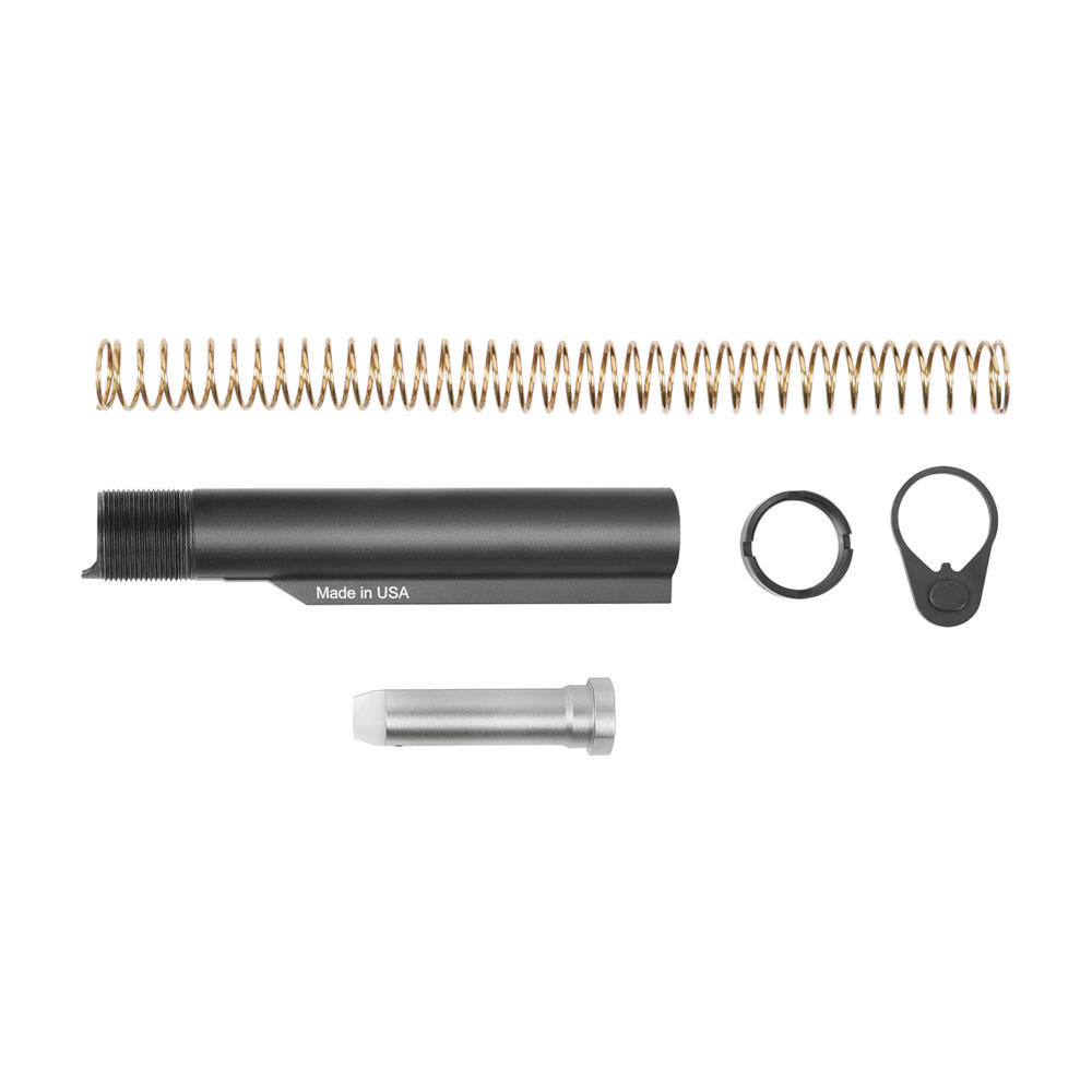 Upgrade your firearm with Trinity Force’s Mil-Spec AR Receiver Extension Kit, a high-quality, durable component made in the USA. This top-quality kit features an aircraft-grade aluminum Buffer Tube with rolled threading and a hard coat anodized finish for maximum corrosion and wear resistance. The Action Spring, made from music wire with a zinc plate coating, provides optimal performance. The kit includes a 3oz Carbine Recoil Buffer, Steel Castle Nut, and Steel End Plate, making it a complete assembly kit for all Mil-Spec AR 15 lower receivers. It is also compatible with most AR 308/AR 10 rifles with modified buffer and spring requirements for proper operation. Trinity Force recommends installation by a competent, qualified gunsmith/installer to ensure the rifle is unloaded and pointed in a safe direction. This upgrade will elevate the performance of your firearm and provide you with reliable and practical components for years to come.