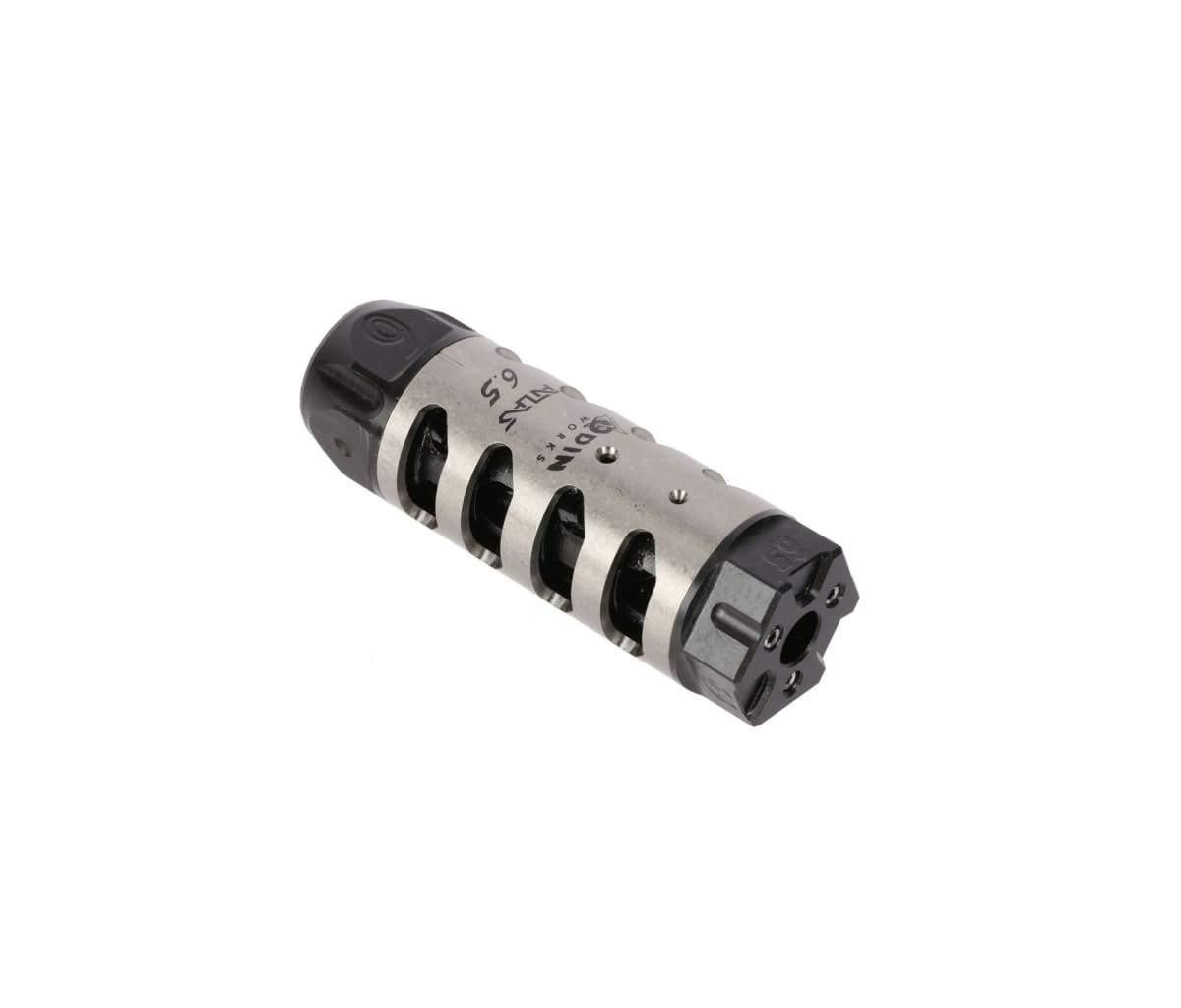 The ODIN Works ATLAS family is true innovation when it comes to muzzle devices. The ATLAS features a 3-piece modular design that makes installation simple and fast. The core and the cap are machined from 416R stainless steel and black nitrided while the sleeve is made from titanium. Timing and tuning is done with the titanium sleeve, no shims or crush washers needed.