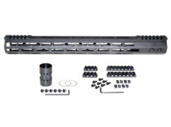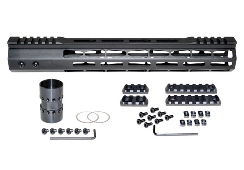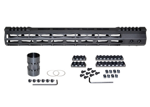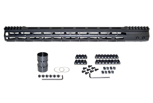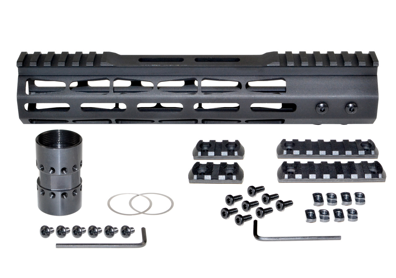 Includes steel barrel nut, screws, (2) shim rings for barrel nut timing, (2) 3 slot M-LOK rail segments, (2) 7 slot M-LOK rail segments, and M-LOK screw set.