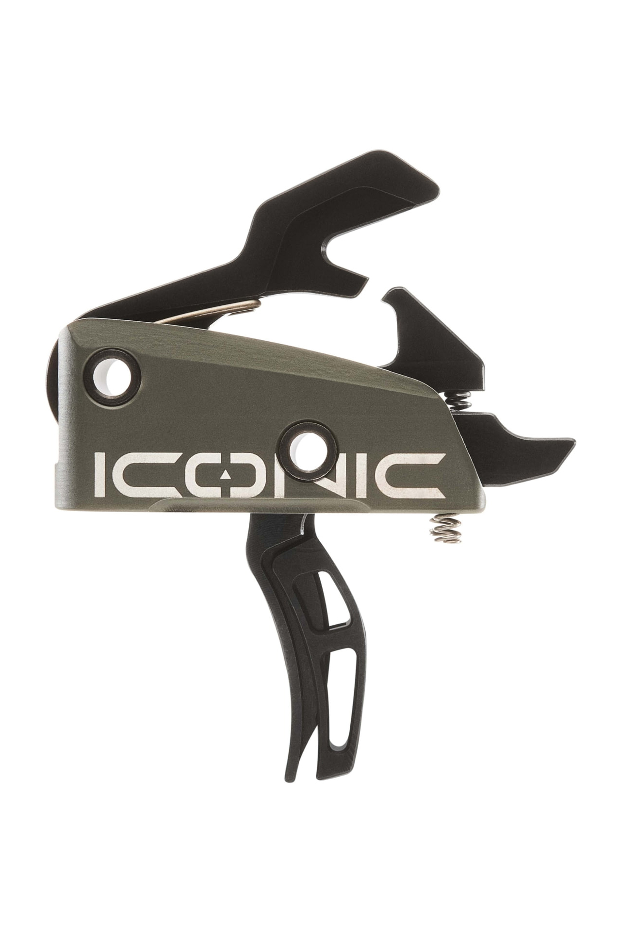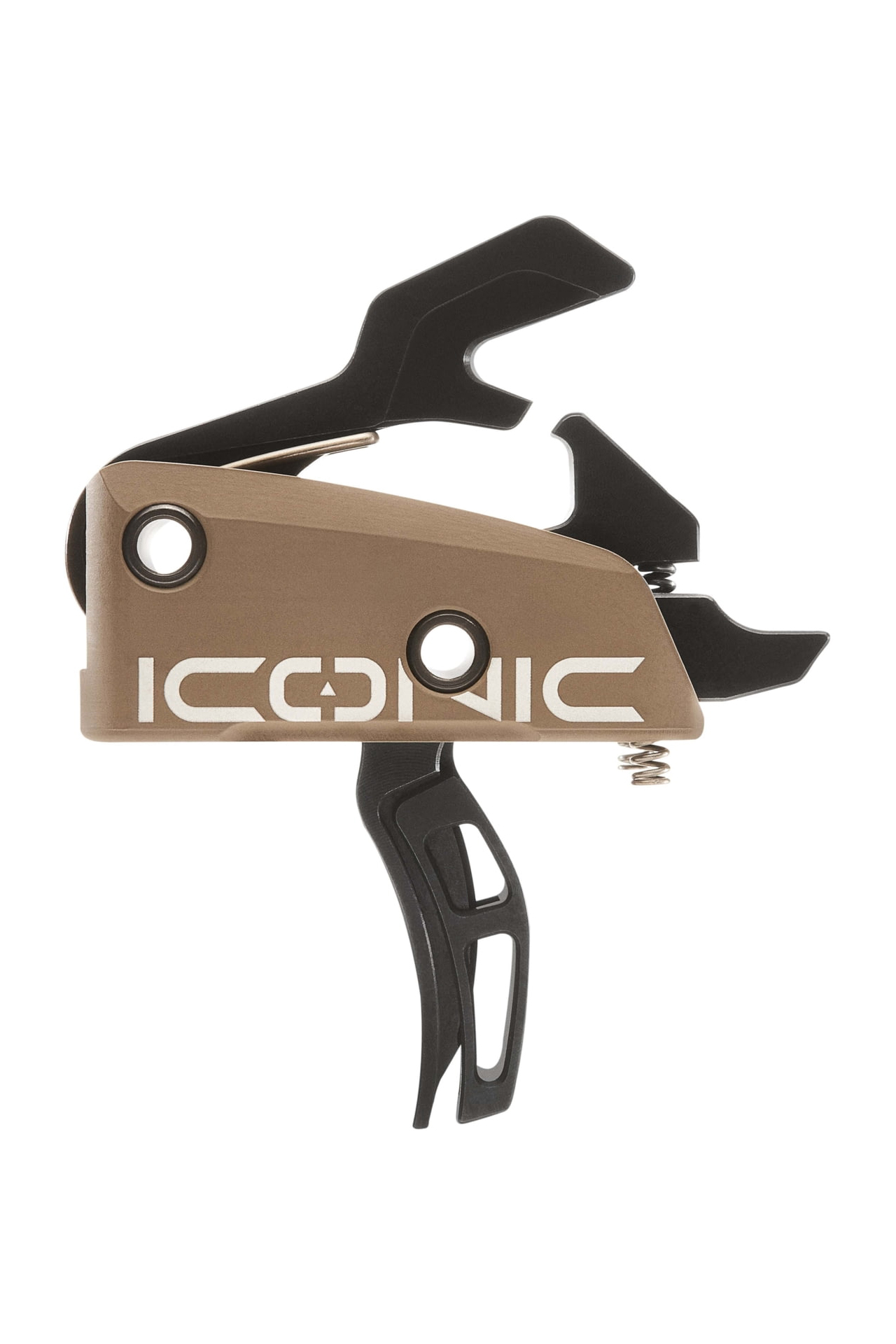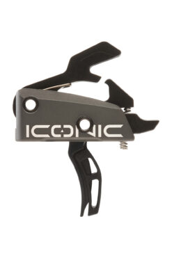 Built for AR-15 and AR-10 platforms, the Iconic trigger features a curved dual-blade design housed in lightweight 6061 aluminum with S7 steel internal components finished in corrosion-resistant black nitride. The StrongArm hammer springs ensure positive ignition with all ammo types. Easy to install with its drop-in, self-contained unit, the trigger also includes anti-walk pins for a secure fit under sustained use.