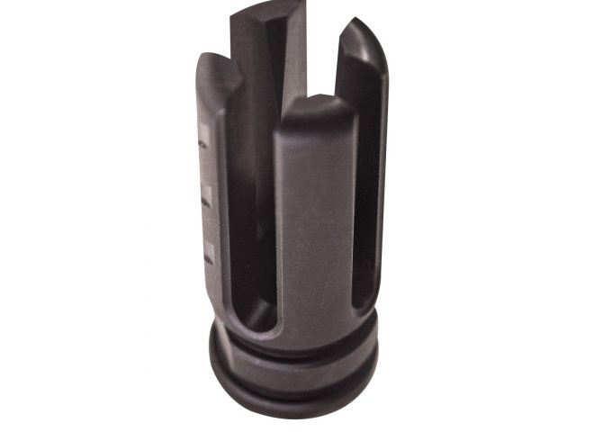 - Proprietary design virtually eliminates the annoying tuning-fork effect that’s common with prong-style flash hiders