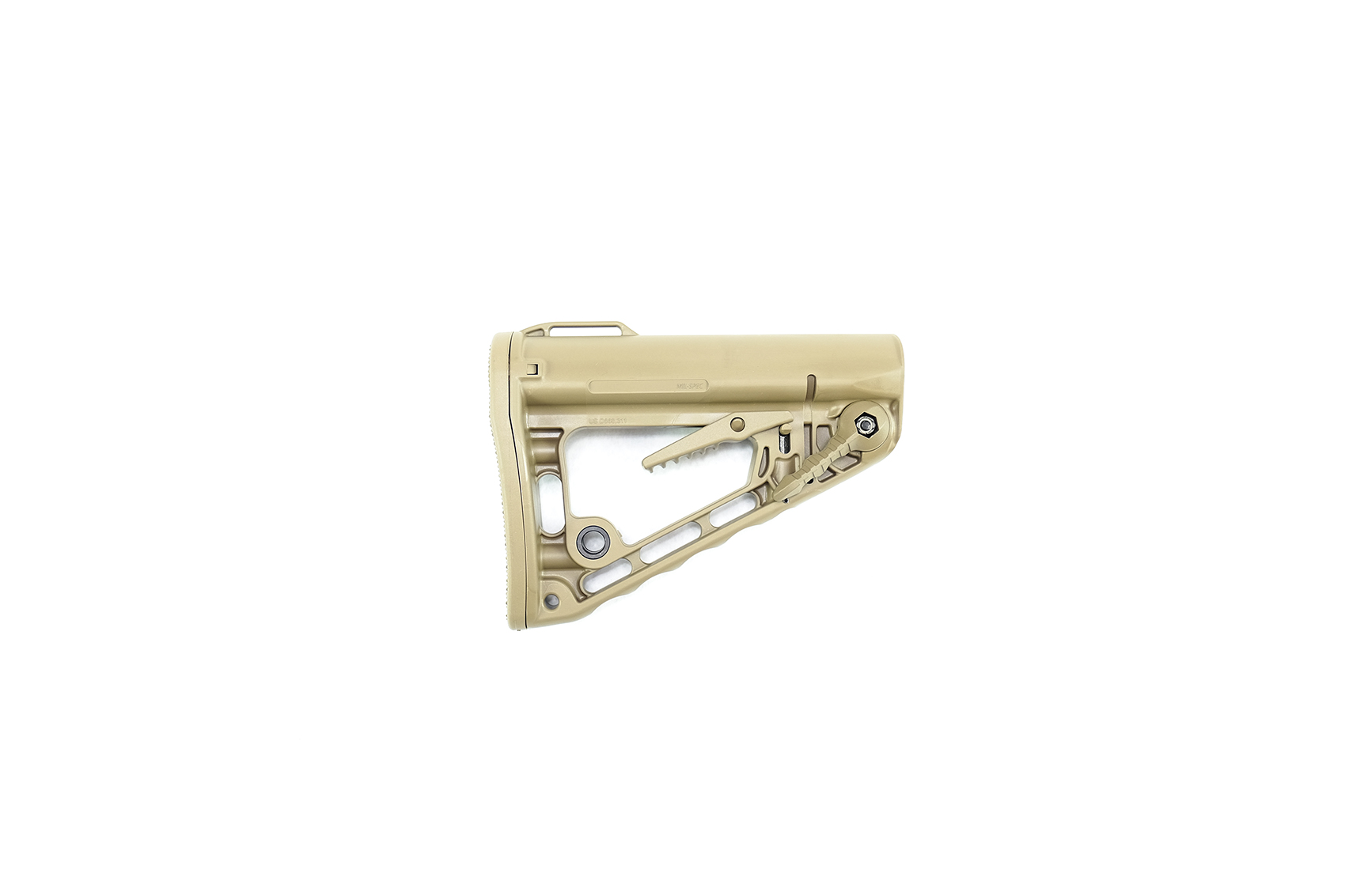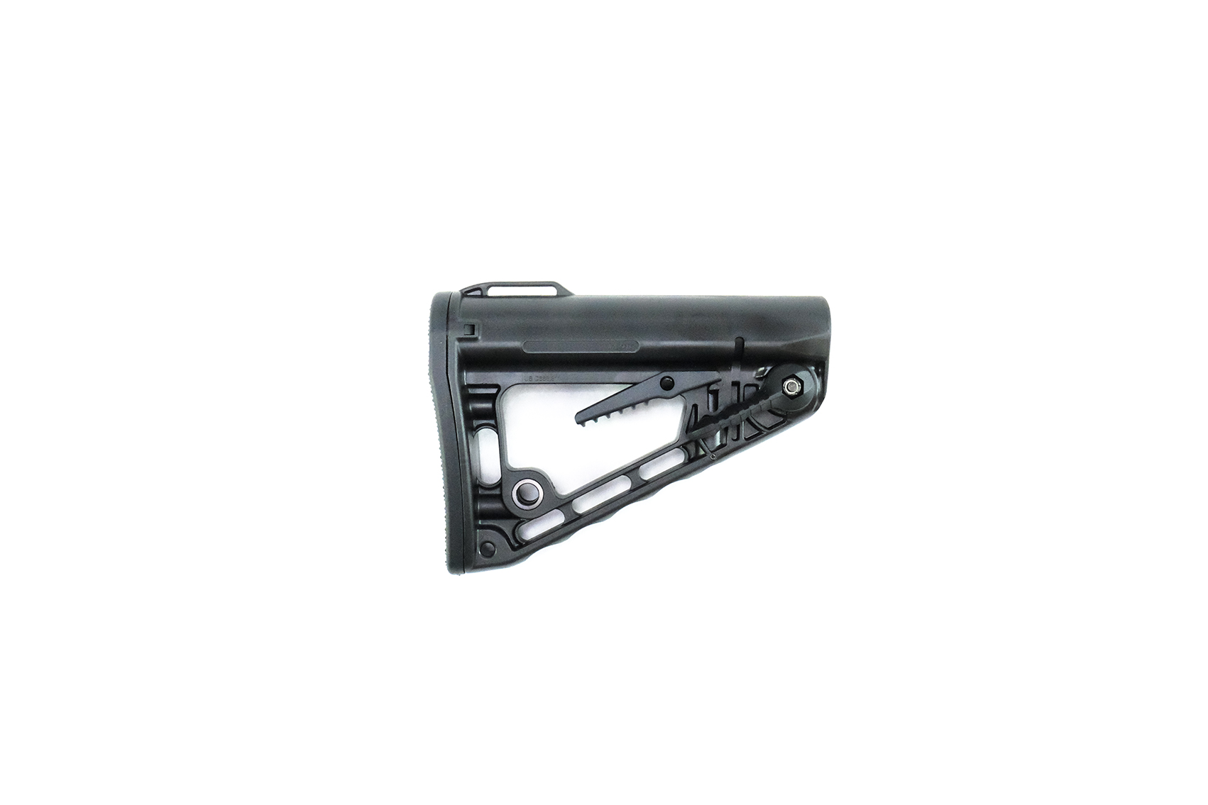 The patented cam-lock system completely removes any slop or play inherent with collapsible stocks. Once the desired stock position has been selected, the stock can be locked down solid simply by depressing the cam-lock lever upward. Pressing the quick-release lever will disengage both the cam-lock and detent pin, allowing you to quickly readjust the stock position.