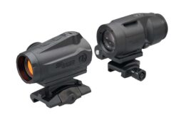 Combining power and precision, the all new ROMEO5 GEN II and JULIET3 Micro package has arrived. Refreshed with a bold new look, the ROMEO5 GEN II optic provides a durable 1x aiming solution for civilians and armed professionals alike, with a crisp 2 MOA red dot emitter powered by a CR2032 battery that can be quickly replaced. Couple with SIG SAUER’S motion-activated MOTAC™ technology, the ROMEO5 GEN II boasts a 40,000 hour runtime under standard usage. Featuring top mount ambidextrous controls that offer 10 daylight and 2 night vision settings, finding the optimal setting for your environment is quick and intuitive.